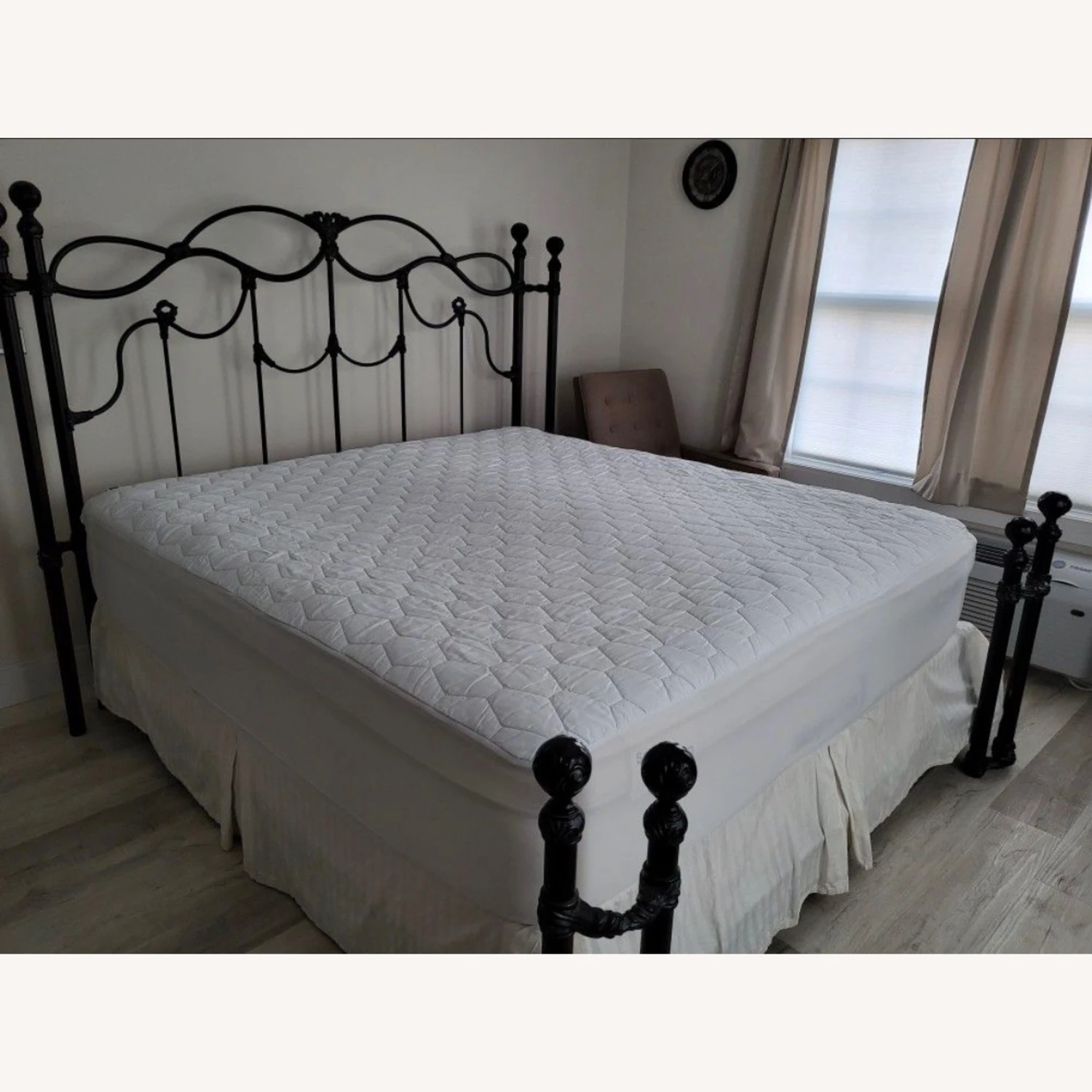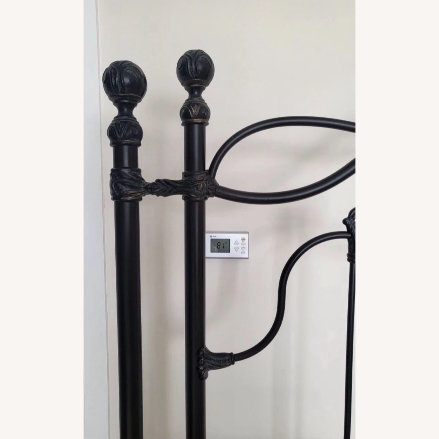 Seller’s Notes: SALE, SALE, SALE! From 800 to 650 A luxurious, beautiful king size black metal headboard and bed frame.