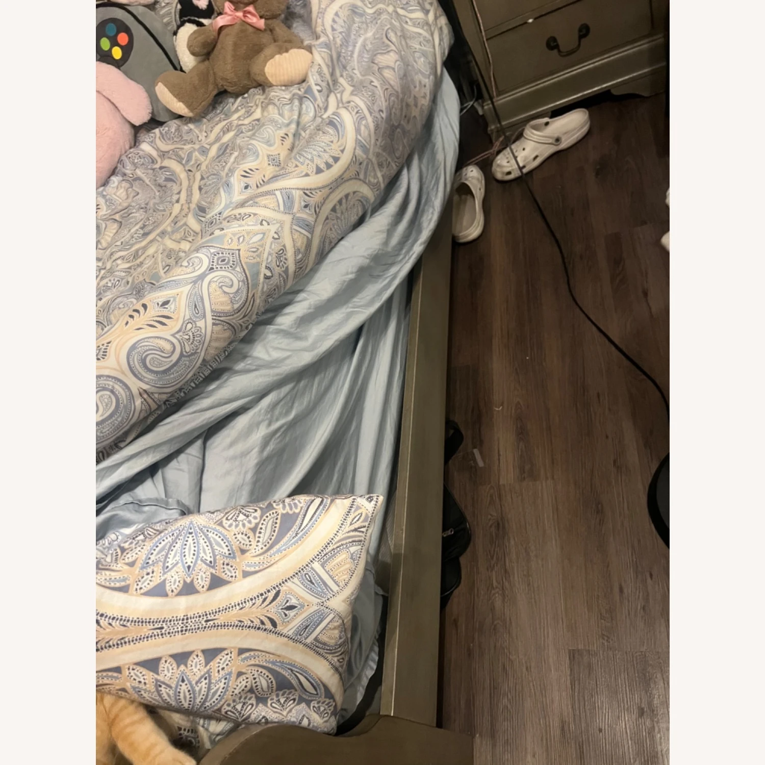 Seller’s Notes: 2 Crown Mark Twin Bed Frames, each for $150 but willing to negotiate. I can include the bases at no extra cost. They need to go ASAP. Used but still in good condition with some scratches. Price negotiable. Dimensions are just approximates.