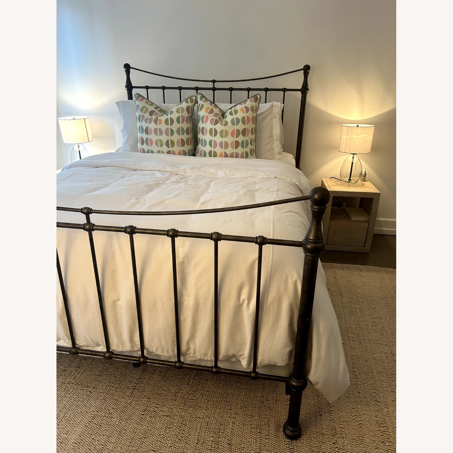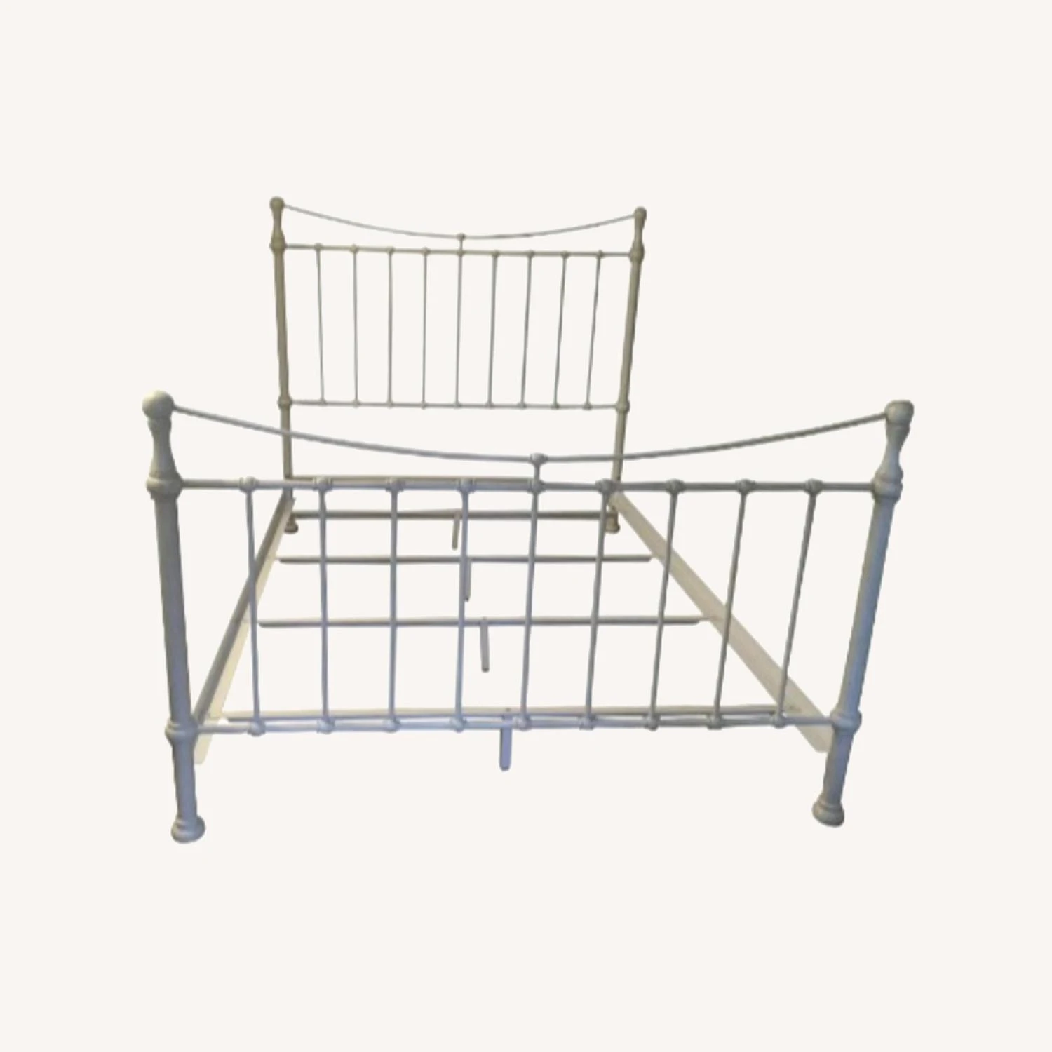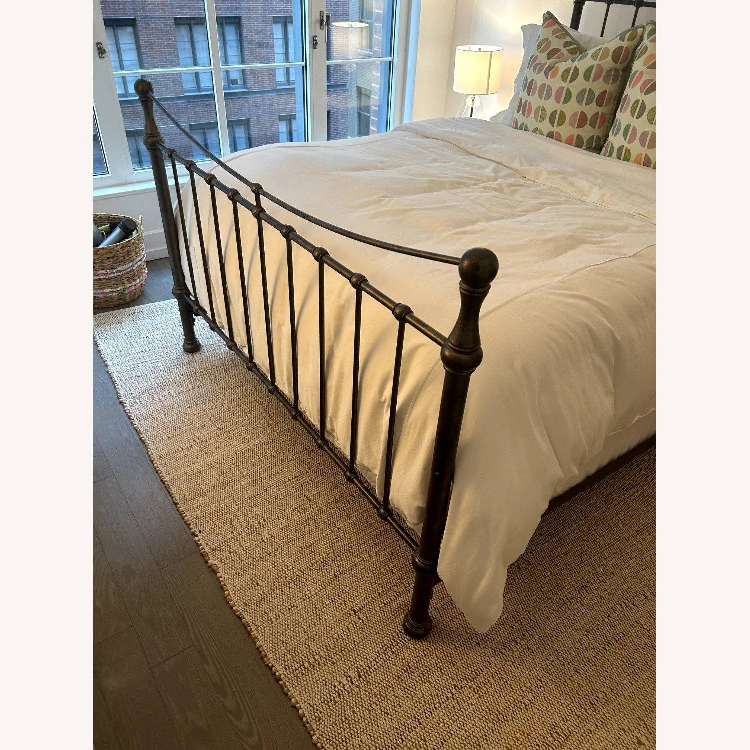 Seller’s Notes: Cast Iron Darby Queen Bed. Box spring is required. Bed frame is in great condition (minor discoloring on one pole) but can be covered with a marker pen. In a clean high-rise building.