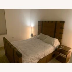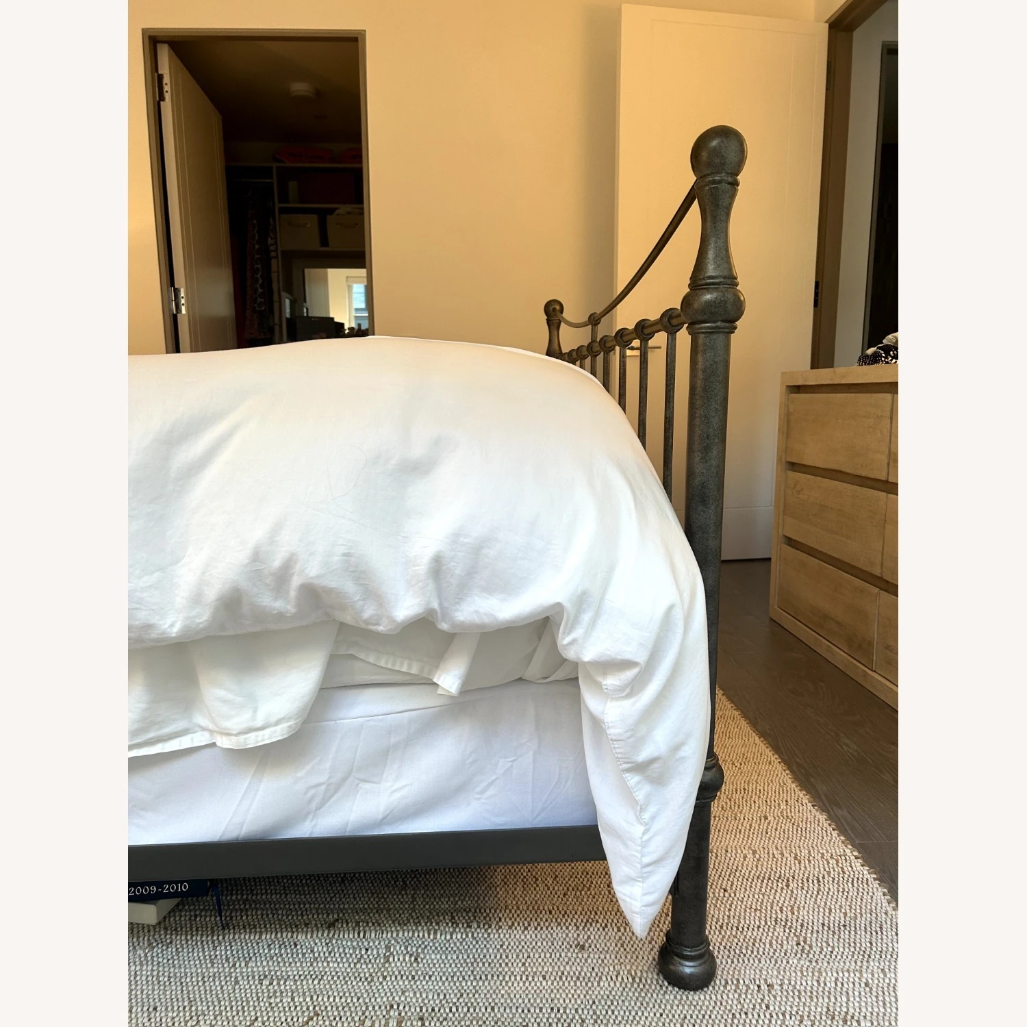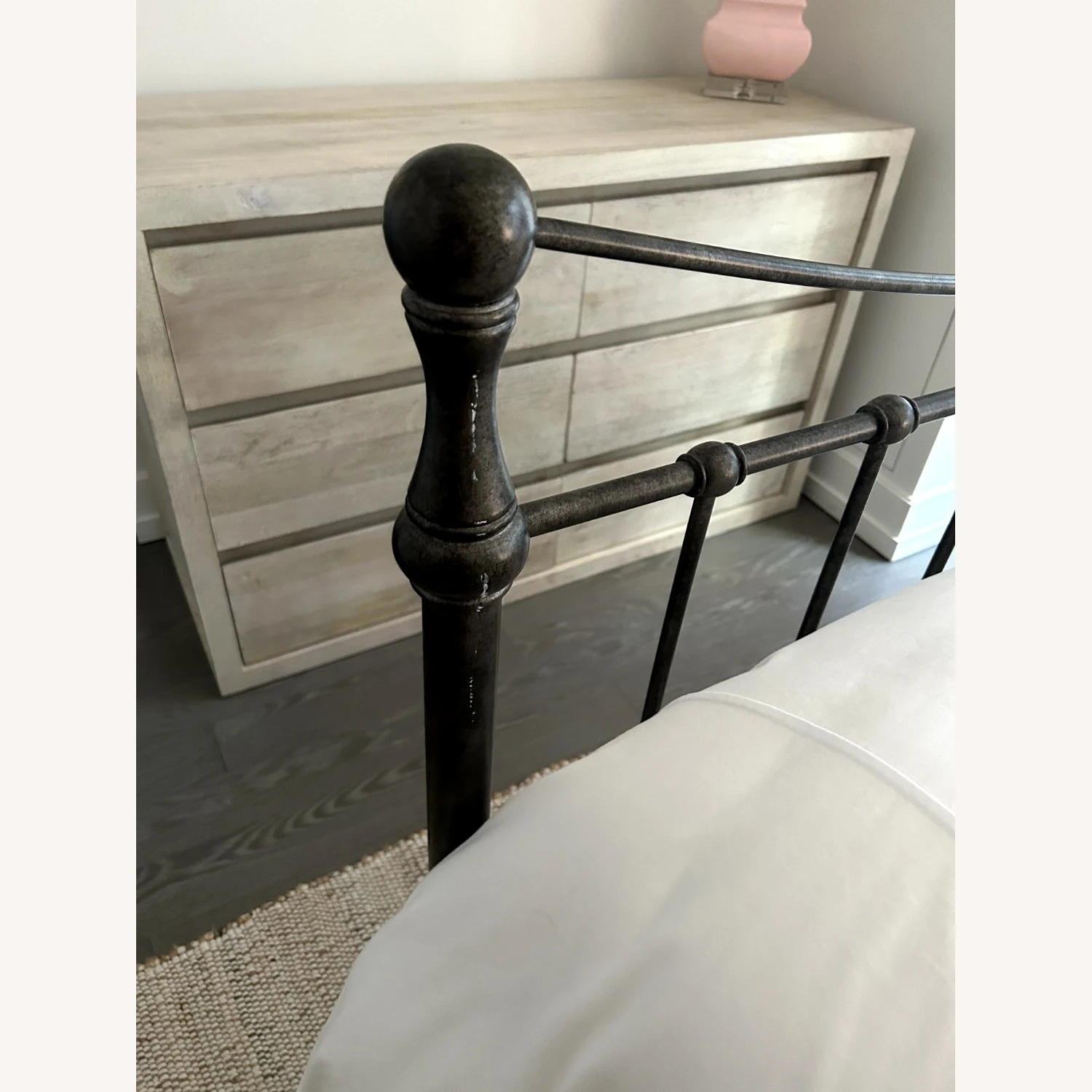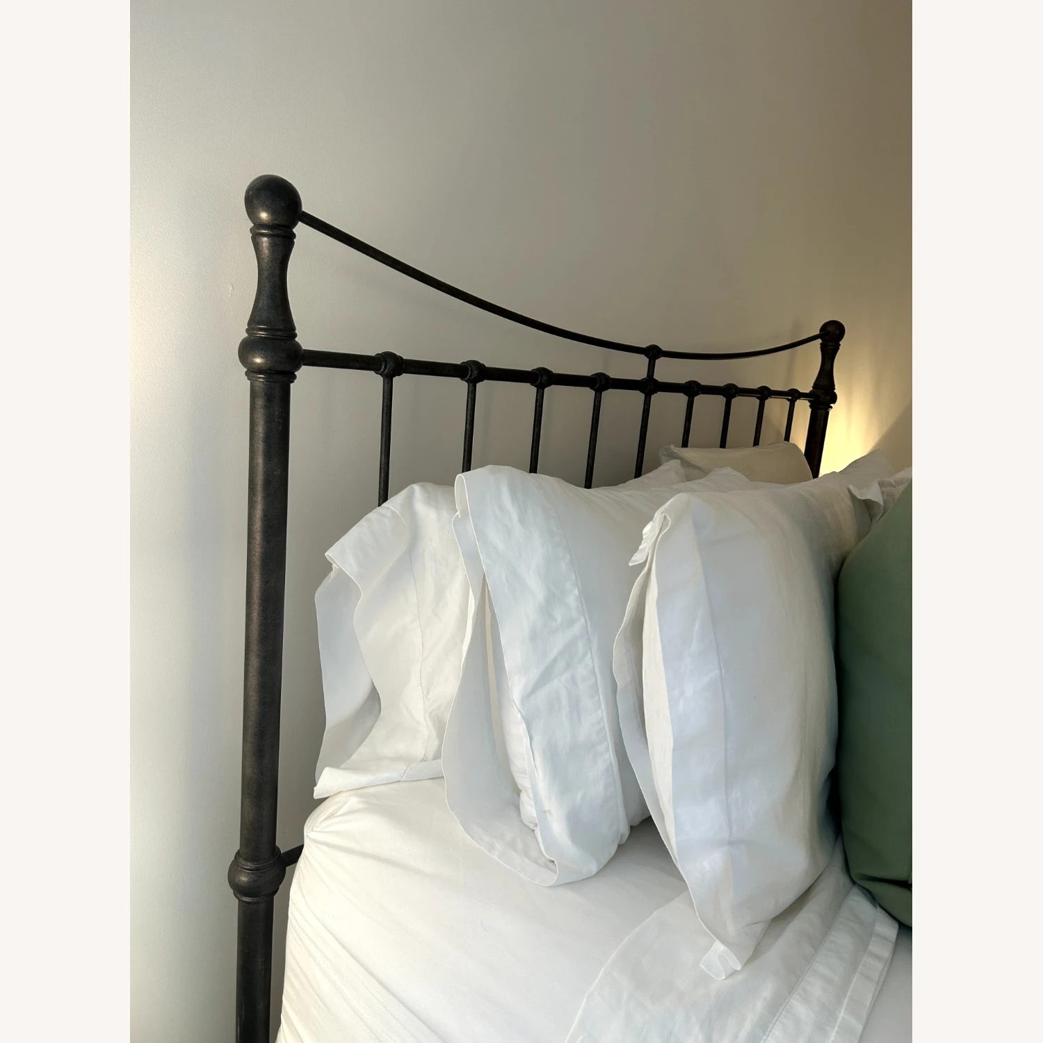 Seller’s Notes: Cast Iron Darby Queen Bed. Box spring is required. Bed frame is in great condition (minor discoloring on one pole) but can be covered with a marker pen. In a clean high-rise building.