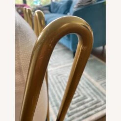 Hardly used; two light marks on the seat and a little scuffing on one part of the gold frame.