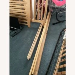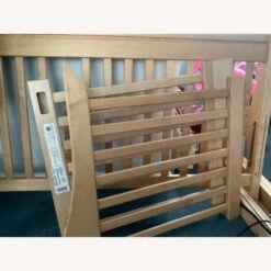 There is one slat damaged in the front piece (used in front of crib; piece NOT used for toddler bed; used as footboard of the full size bed)