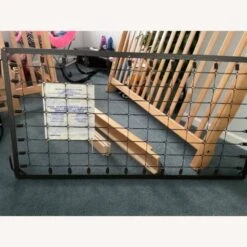 There is one slat damaged in the front piece (used in front of crib; piece NOT used for toddler bed; used as footboard of the full size bed)