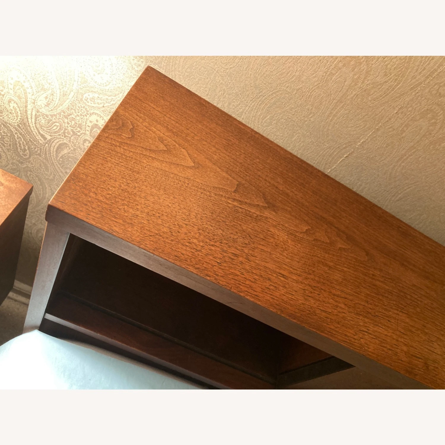 I believe this is walnut, and is part of a complete bedroom set, which includes the headboard (and metal bed frame), two night tables , a lowboy dresser, and an absolutely awesome highboy dresser. It belonged to my parents, who were ancient art dealers in New York City. They treated their furnishings like works of art, so everything is in excellent condition.