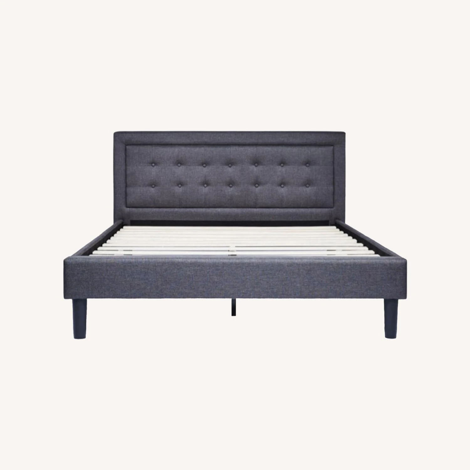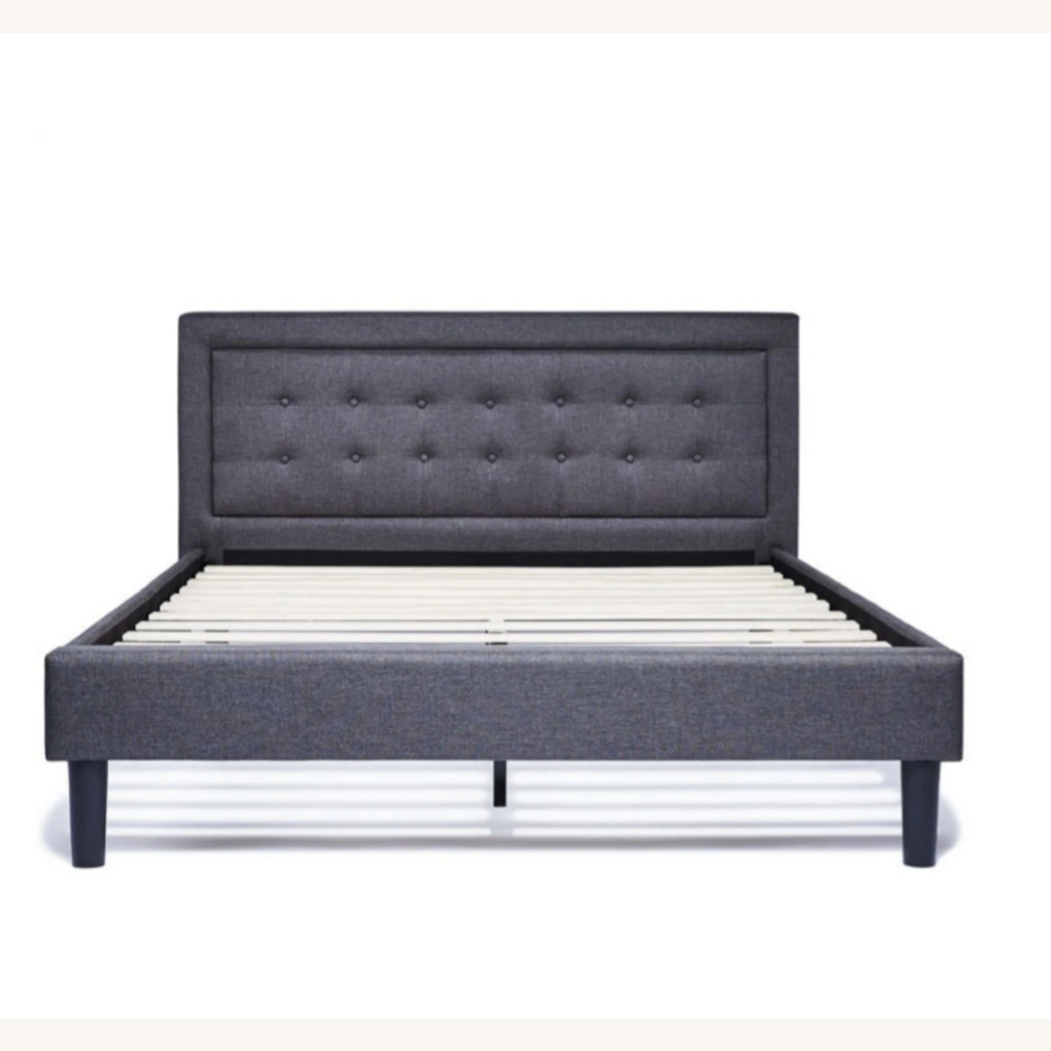 Seller’s Notes: Queen Size Bed Frame with Headboard has 8-inch legs and sturdy wooden slats that provide a durable foundation for your mattress, no box spring required. The button-tufted, upholstered headboard offers soft comfort and style. The item is brand new in the box; currently in the process of moving.