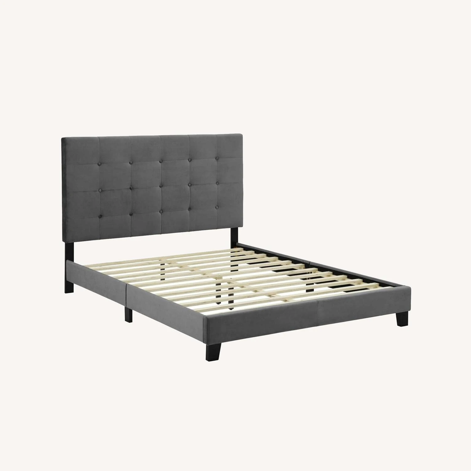• Clean lines, a straightforward profile, and classic button tufting define this queen platform bed.