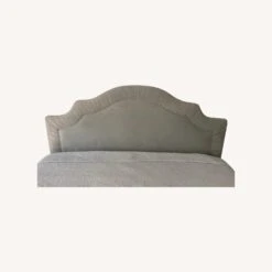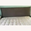 Seller’s Notes: 52″ tall headboard for a queen bed frame. It attaches directly to the frame with a nut and bolt (not included) so you can adjust the height of the headboard. The fabric part of the piece is 30″ high. It has signs of aging but is still in good condition (photos included).