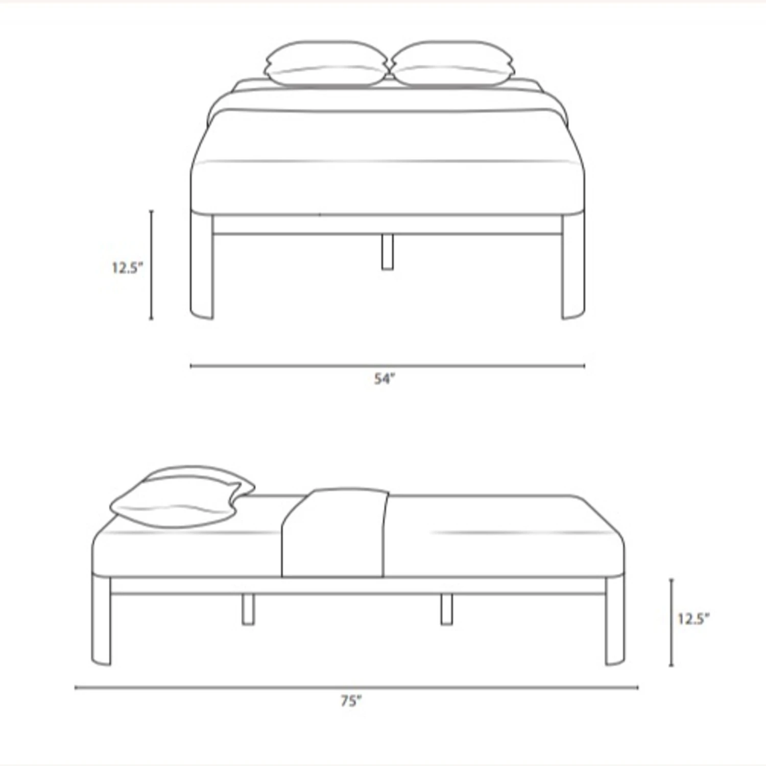 Overall Dimensions: Width: 75 inches, Height: 12.5 inches, Depth: 54 inches
