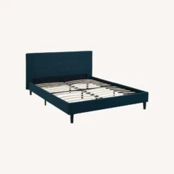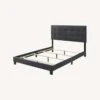 • Charmingly designed with grace and distinction, this bed comes with an upholstered polyester fabric base and tufted headboard, solid wood legs, and a slatted wood support system that eliminates the need for a box spring.