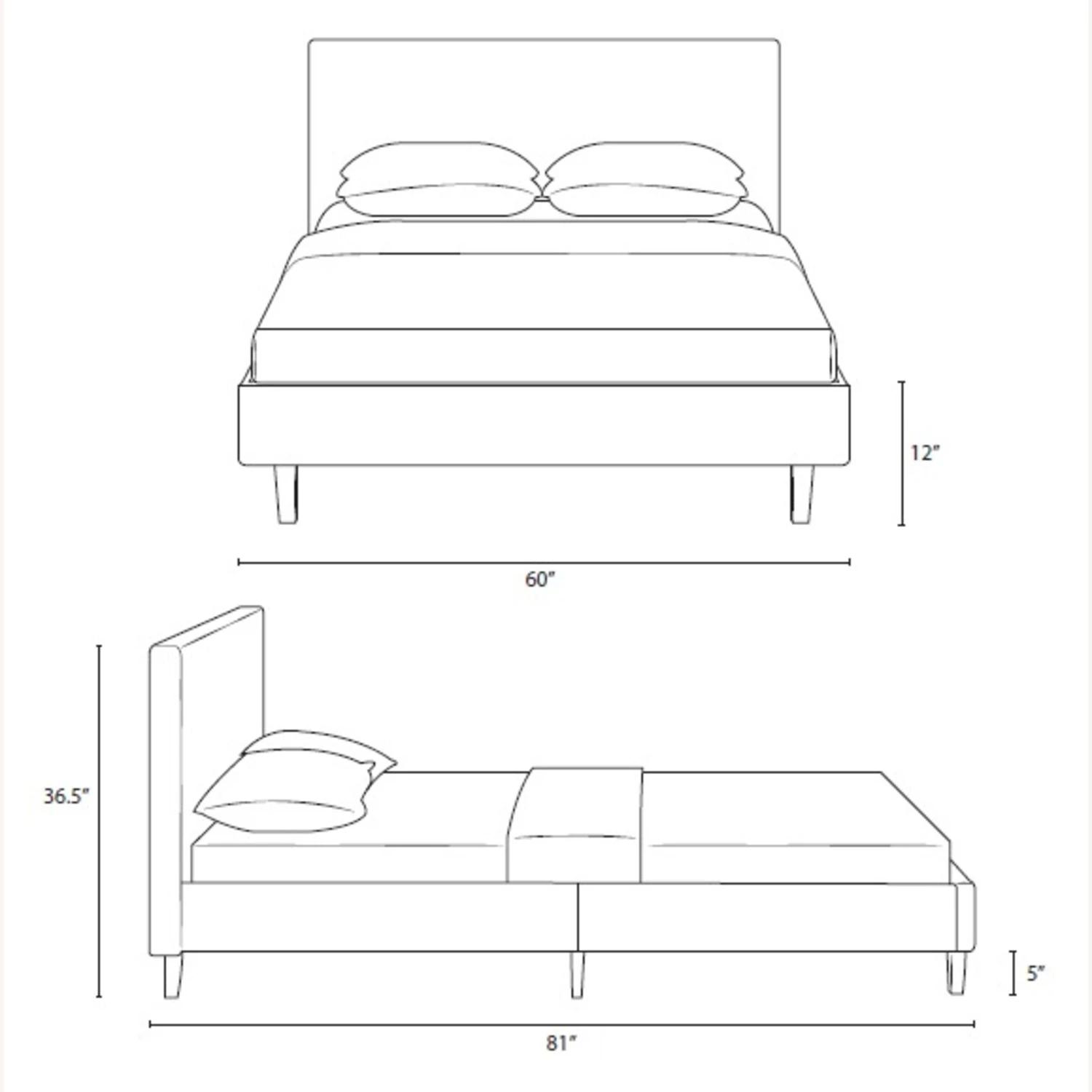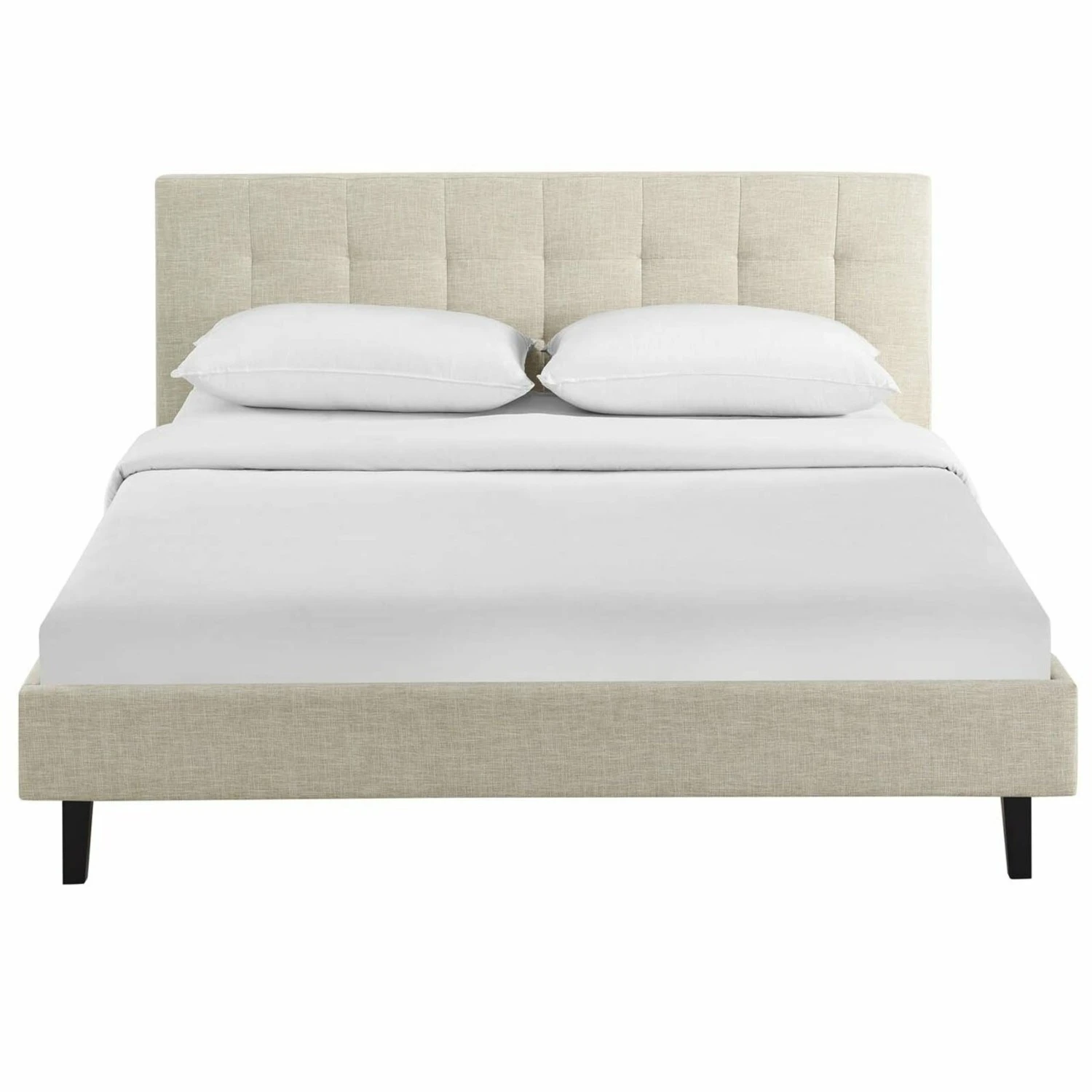 • Charmingly designed with grace and distinction, this bed comes with an upholstered polyester fabric base and tufted headboard, solid wood legs, and a slatted wood support system that eliminates the need for a box spring.