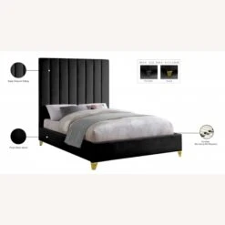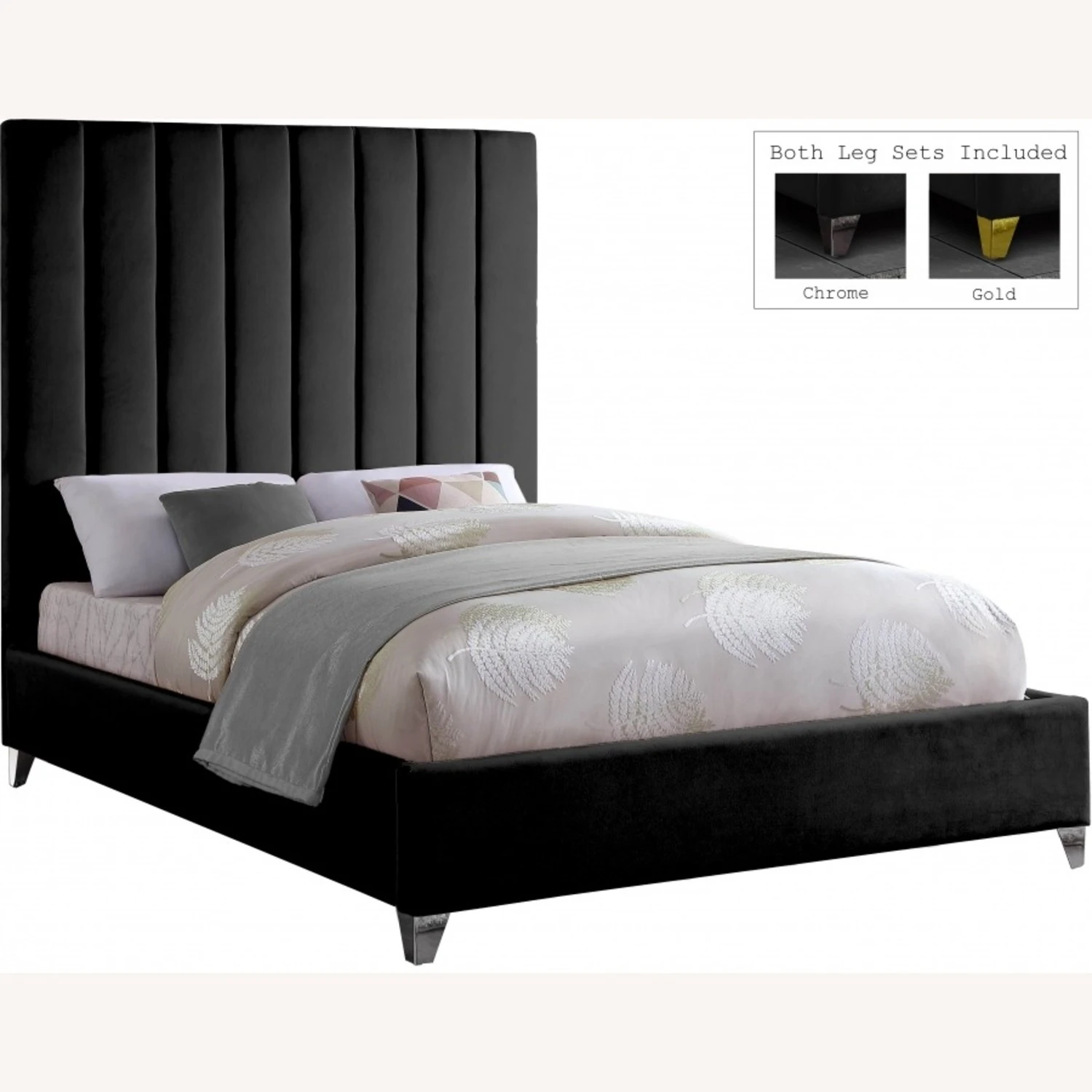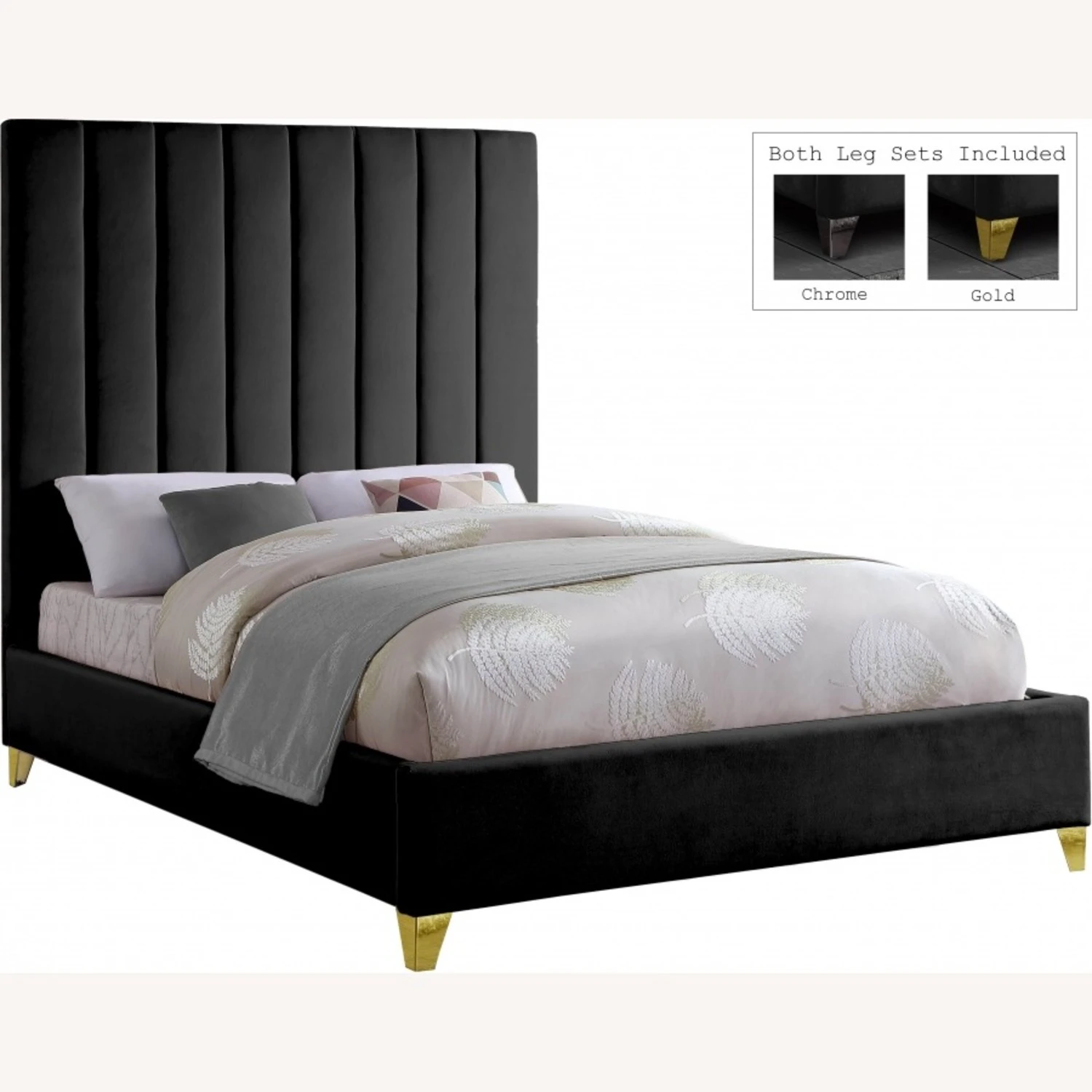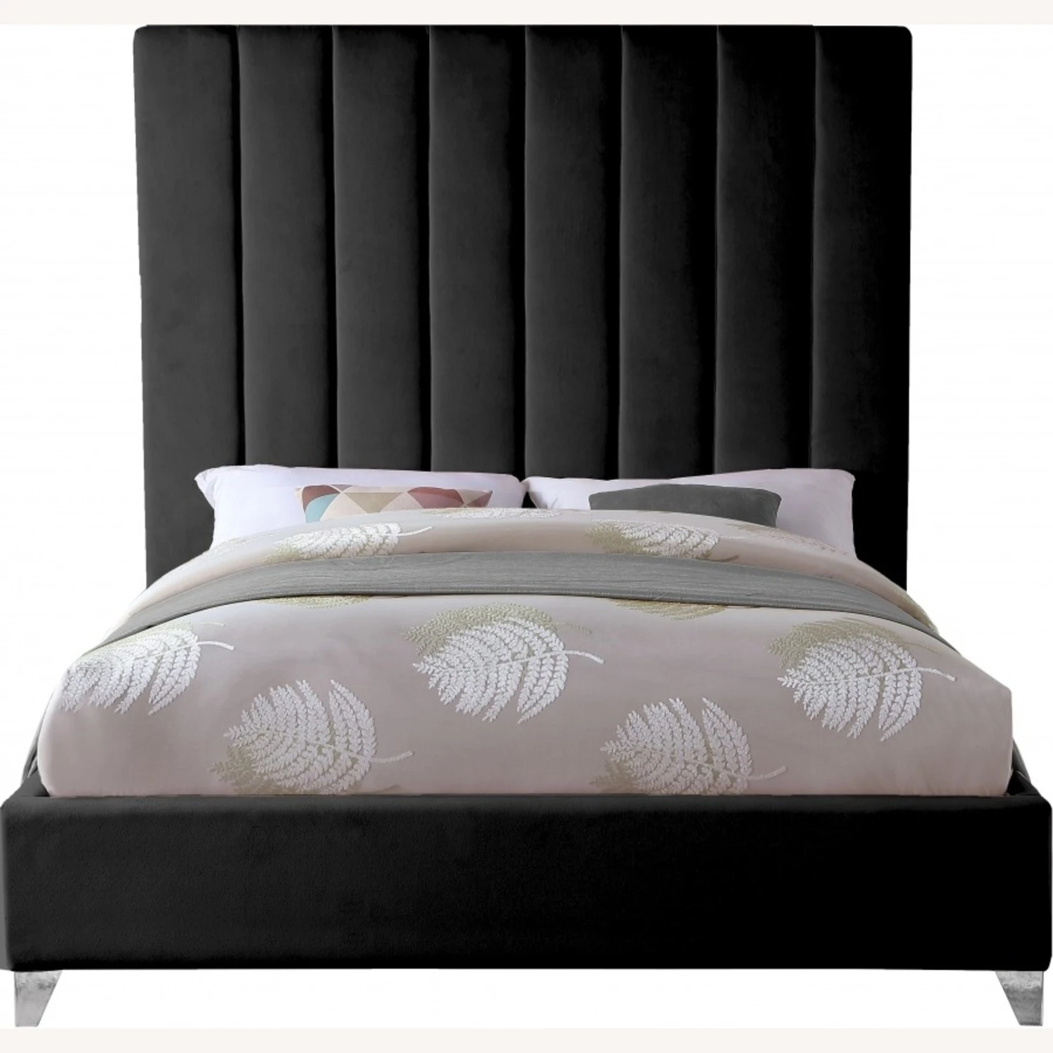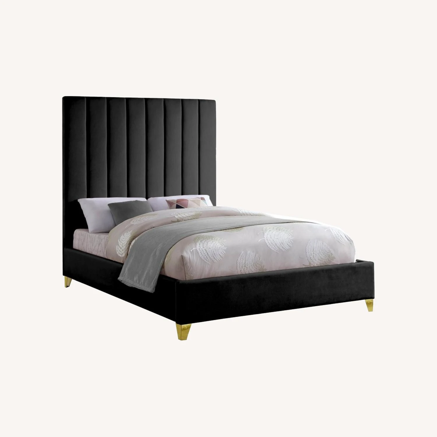 • Sleek black velvet upholstery gives this bed a true upscale feel and epitomizes fine living while channel tufting along the headboard keeps the padded material inside plump and aloft—so it cradles your body while you sit up in bed to watch TV or read.