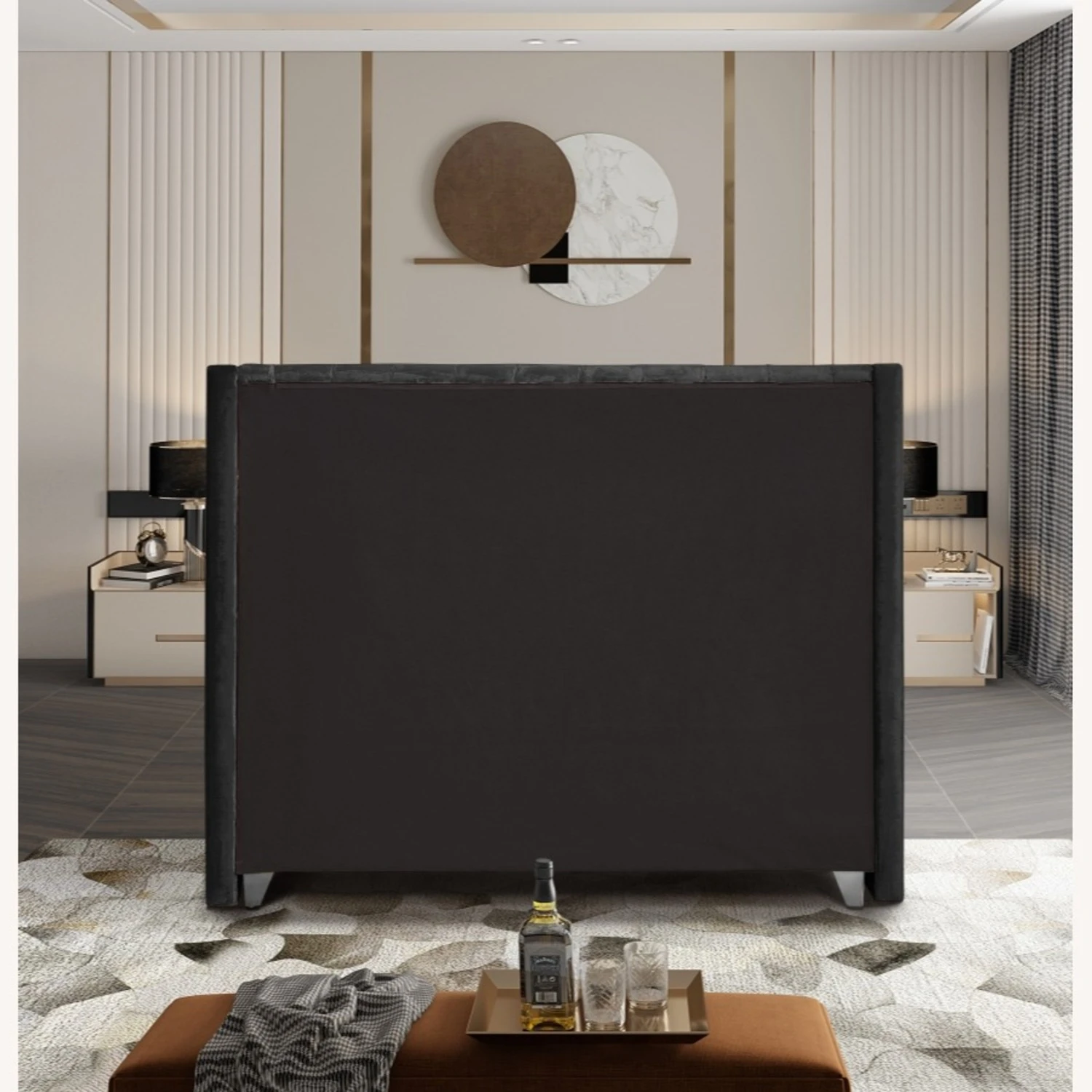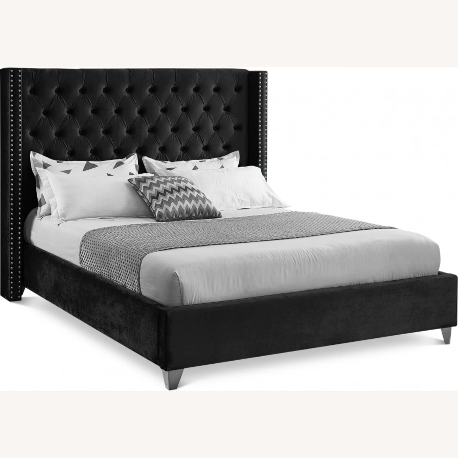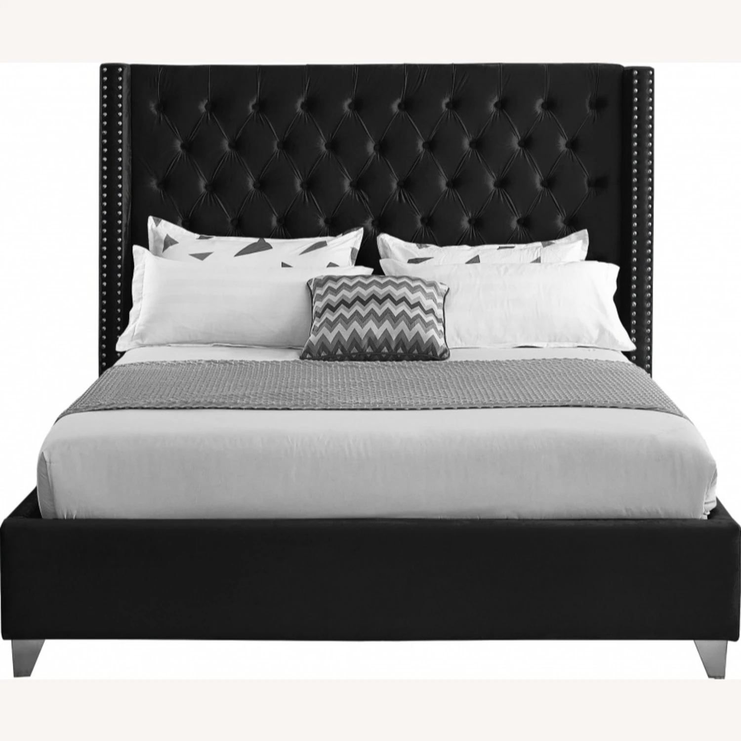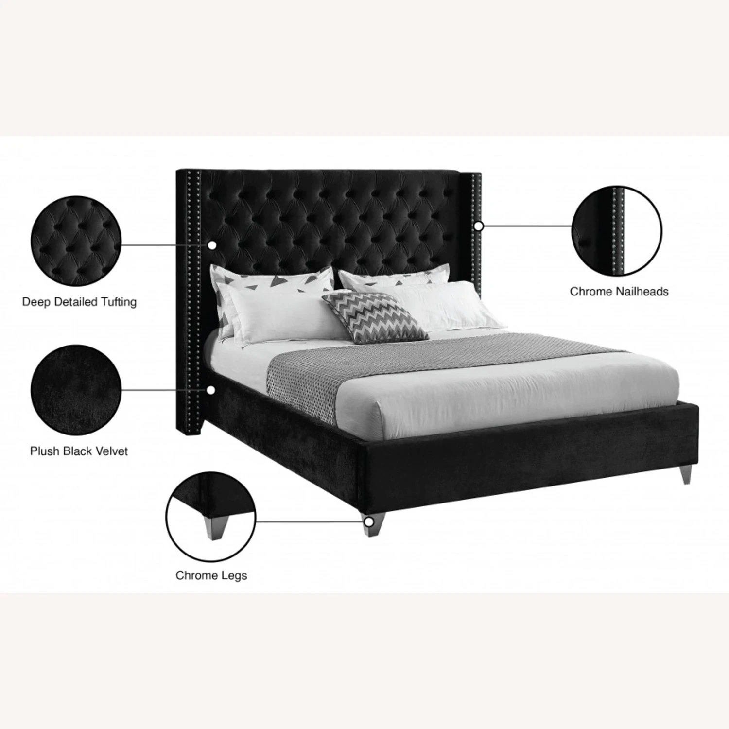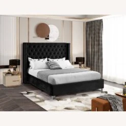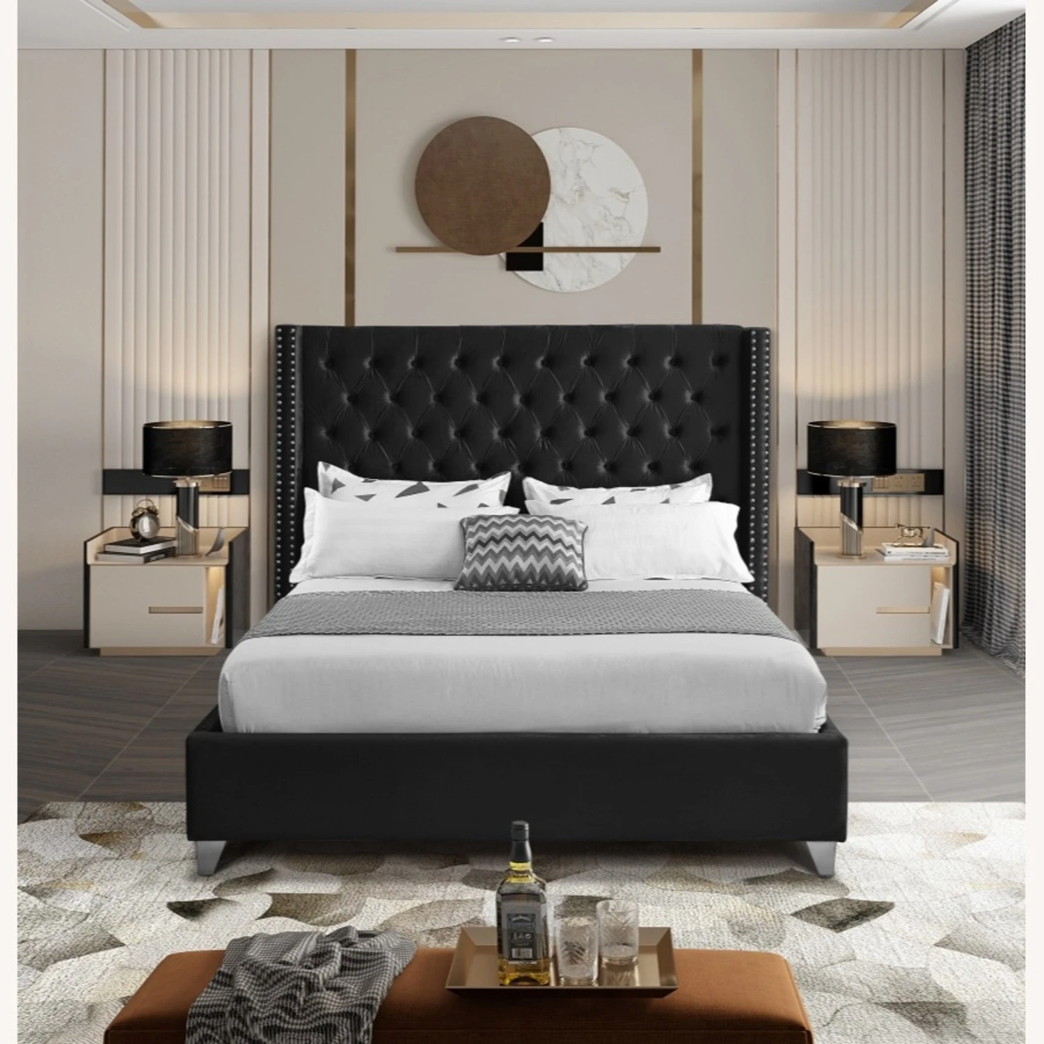 • Elegant and eye-catching, the stunning queen bed is the perfect addition to any bedroom. Rich velvet covers the deep tufted design.