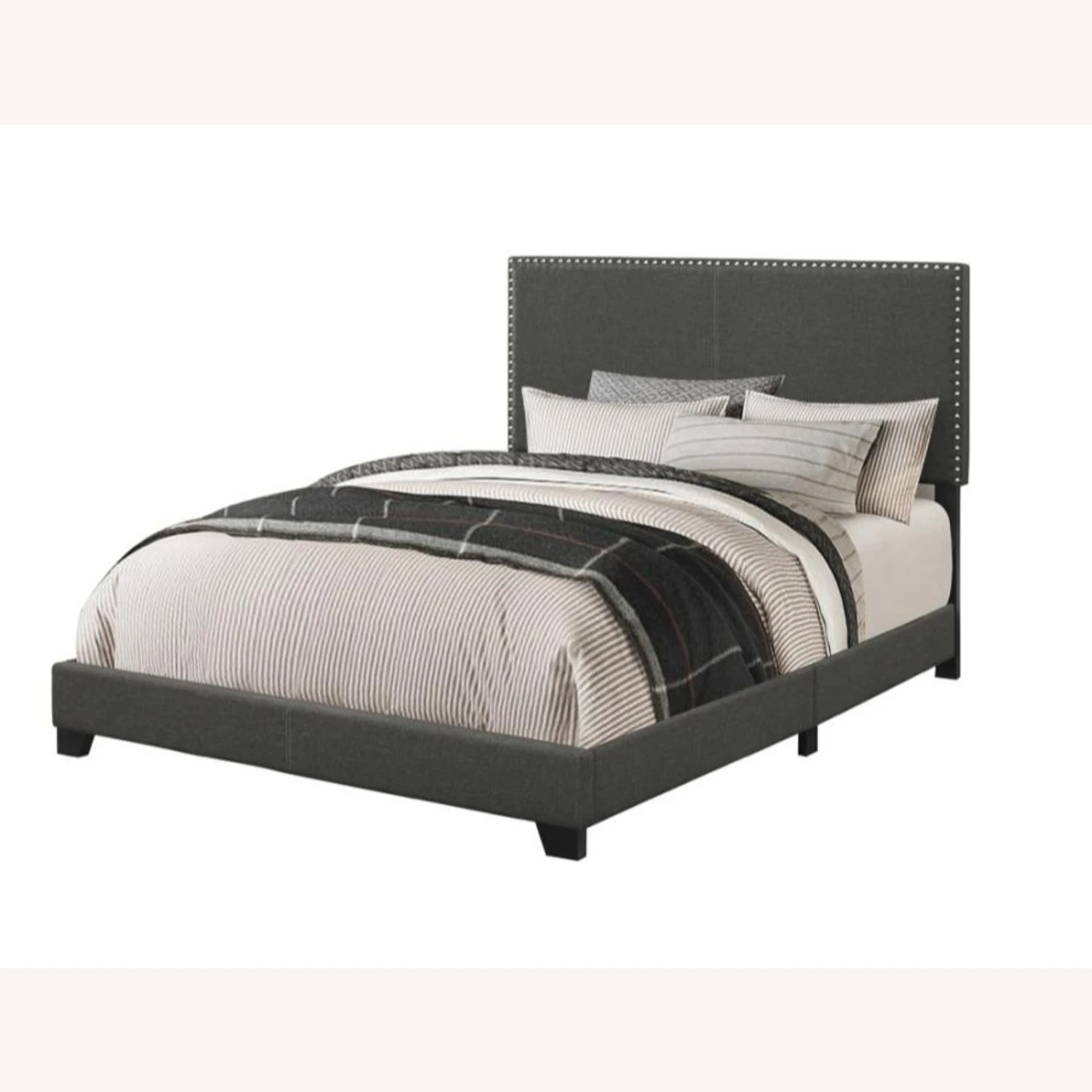 • Upholstered bed in a charcoal fabric