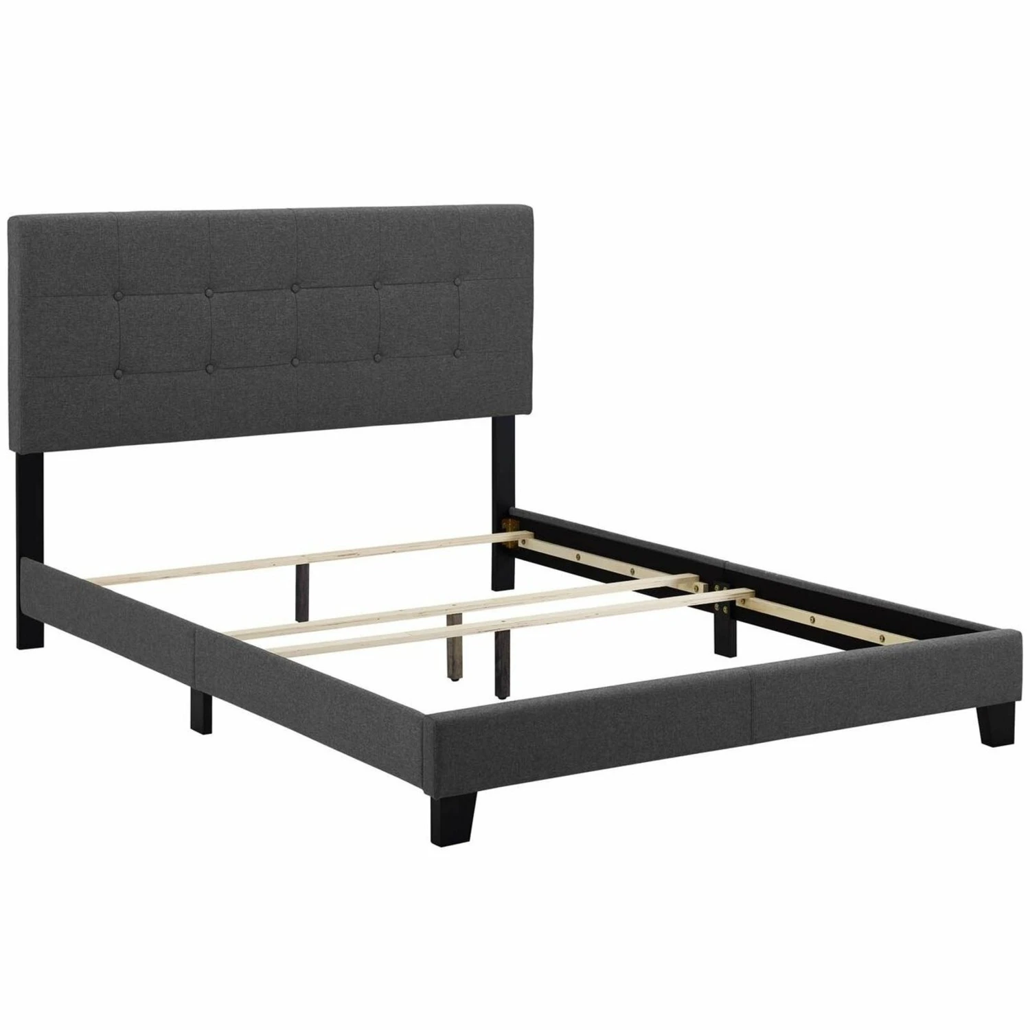 • Inspire sweet dreams with a cozy king bed. Designed with chic elegance and contemporary style, this bed comes with a soft polyester fabric upholstered base, timeless button-tufted headboard, and wood bed frame and legs, with non-marking foot caps.