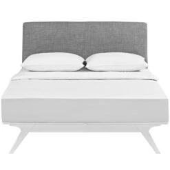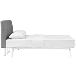 • Finely upholstered with a foam padded fabric headboard, this is an easy to maintain white finished piece that admirably delivers both comfort and style.