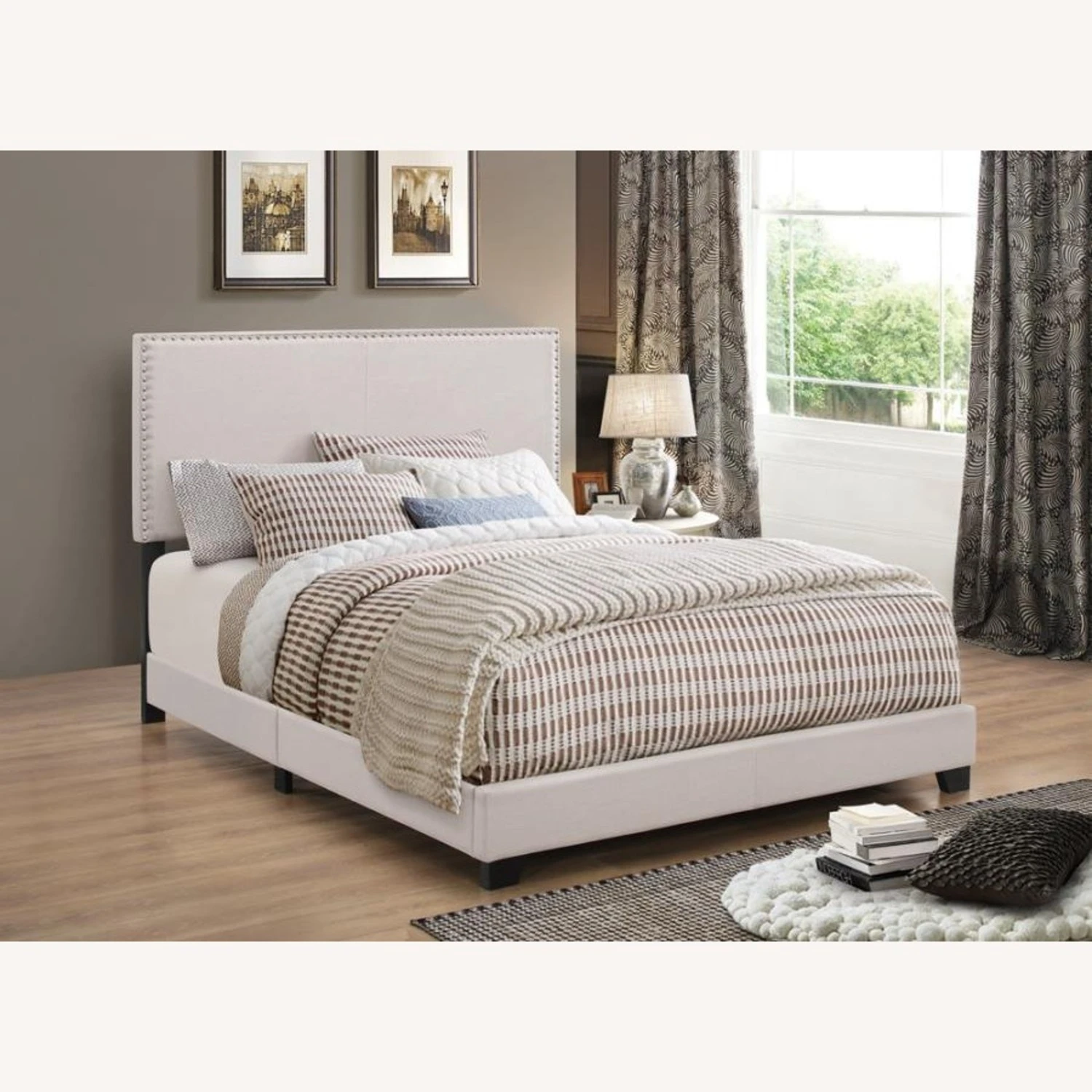 • Upholstered bed in ivory fabric