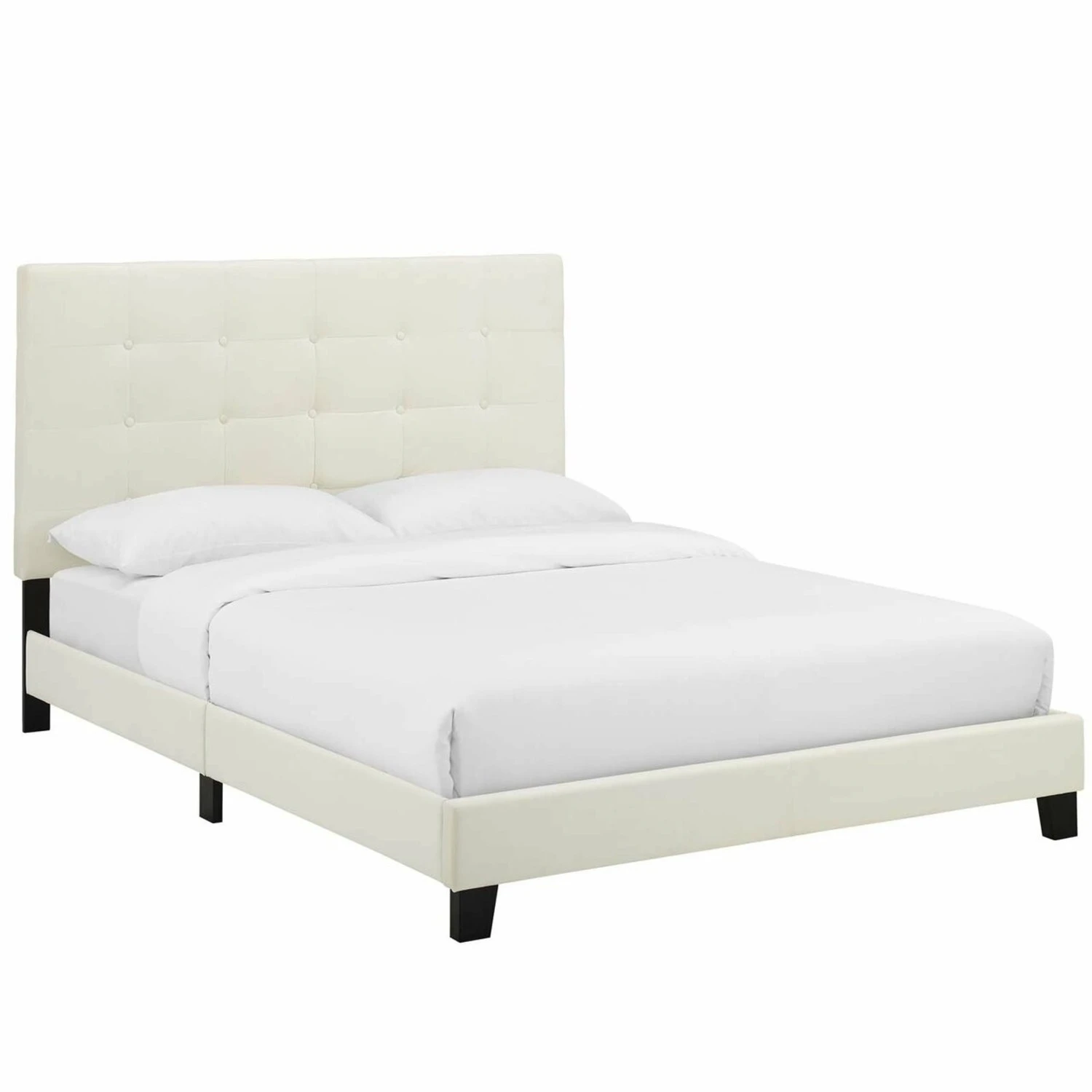 • Clean lines, a straightforward profile, and classic button tufting define this full platform bed.
