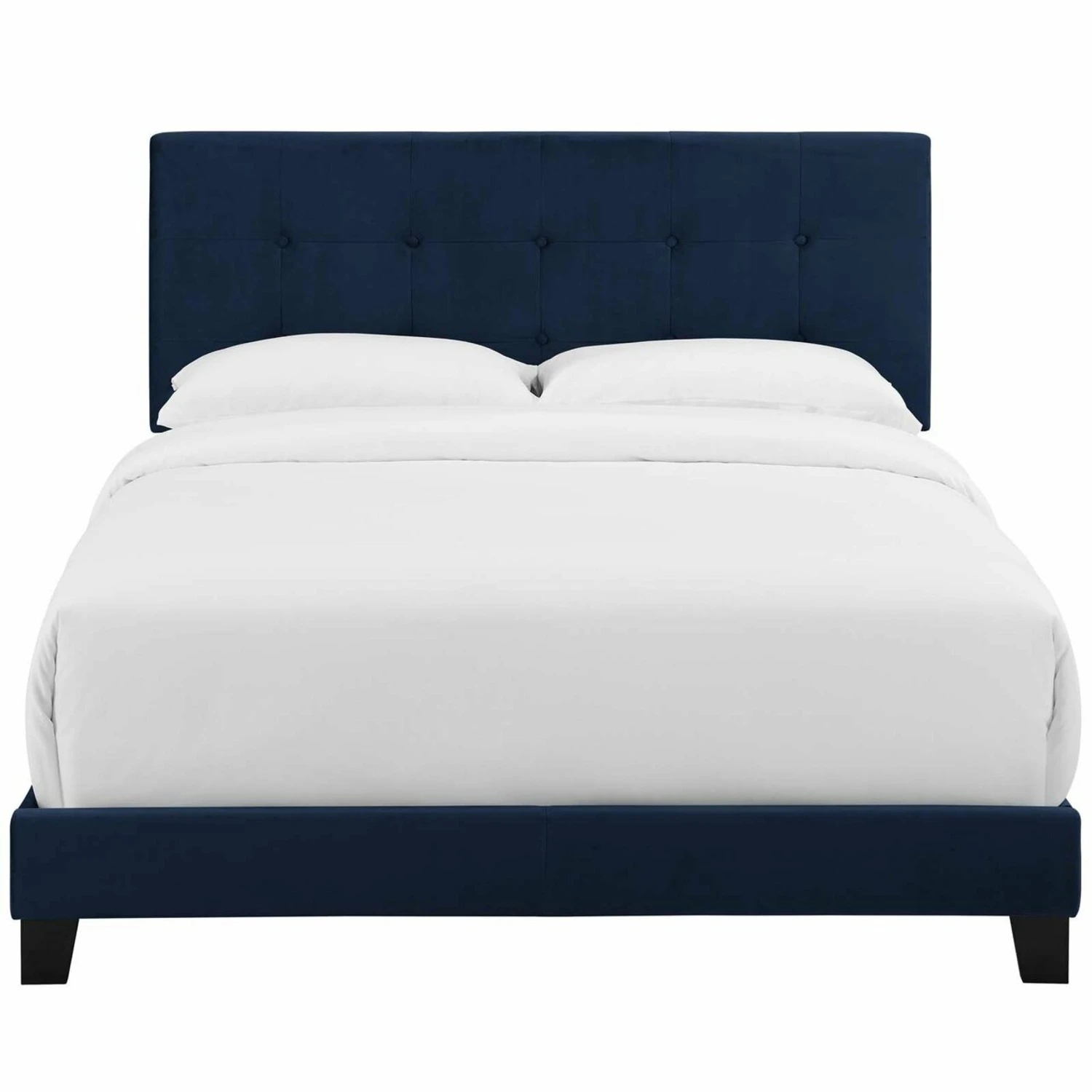 • Designed with chic elegance and contemporary style, this bed comes with a stain-resistant performance velvet fabric upholstered base, timeless button-tufted headboard, and wood bed frame and legs, with non-marking foot caps.