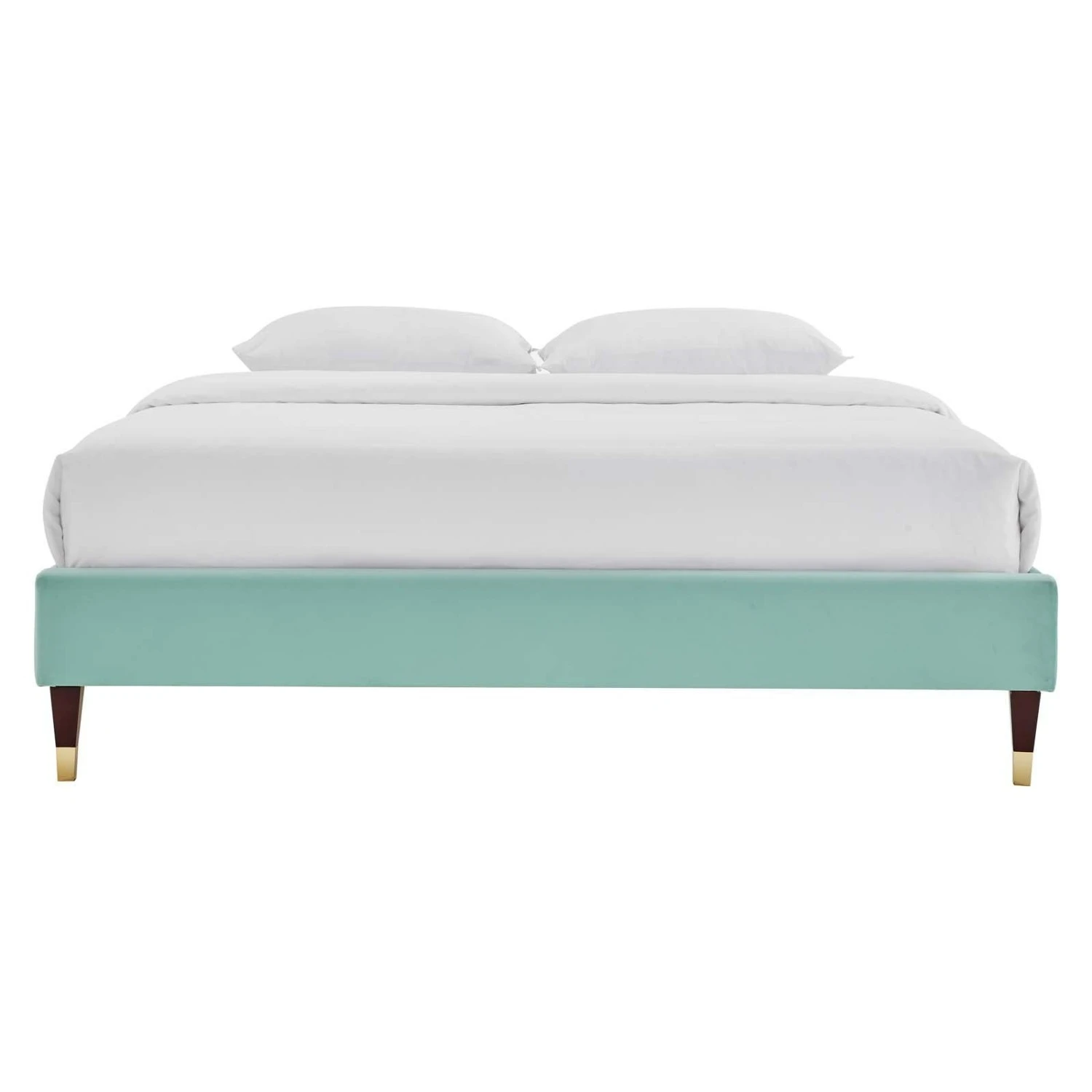 Other Full Bed In Mint Velvet W/ Poplar Wood Slat Frame