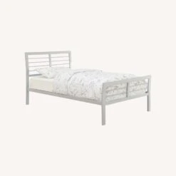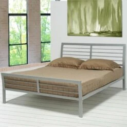 • Contemporary metal bed in silver finish