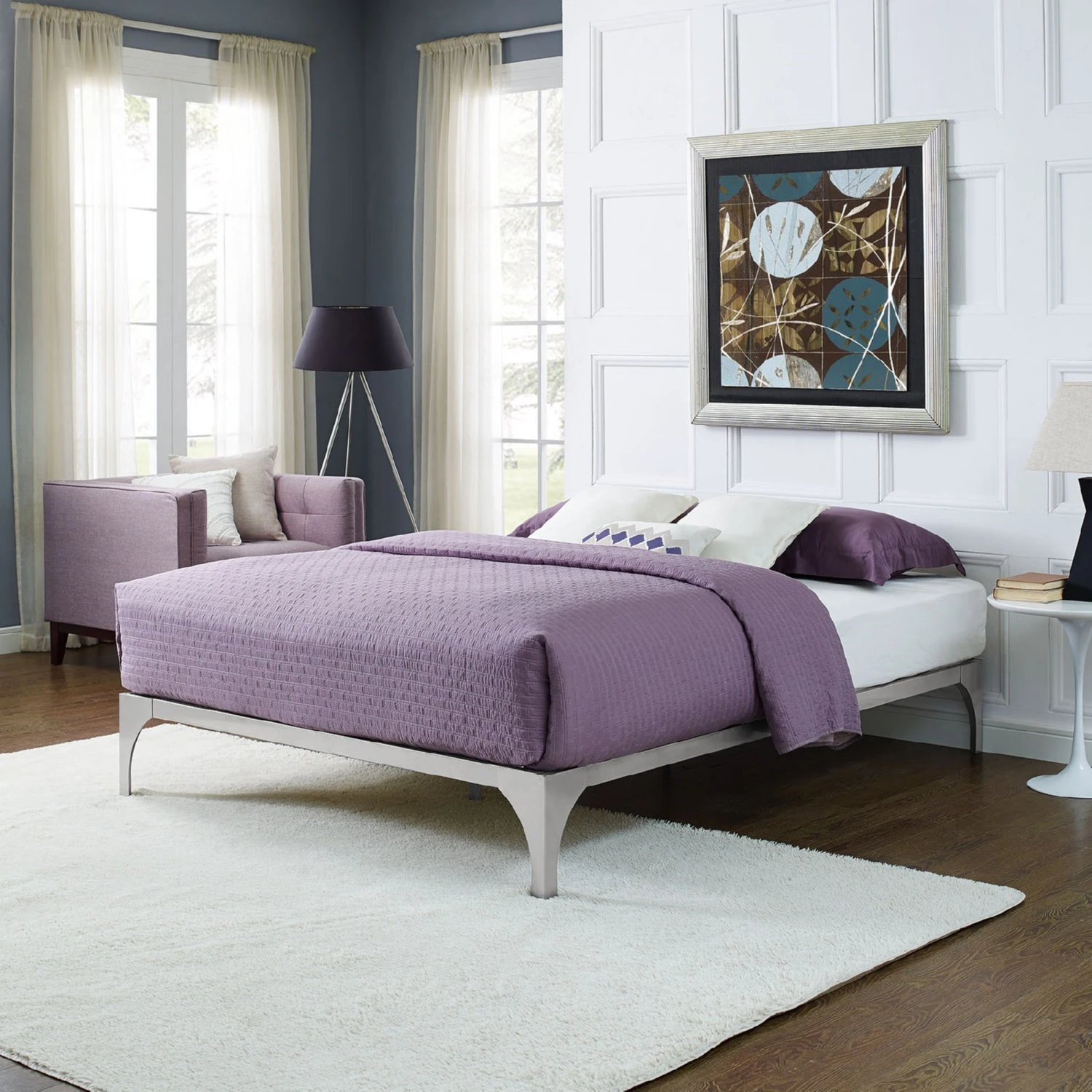 • With a slatted wood support system and sturdy steel frame, this bed eliminates the need for a boxspring and firmly supports the various mattress types on the market such as memory foam, spring, latex, and hybrid.