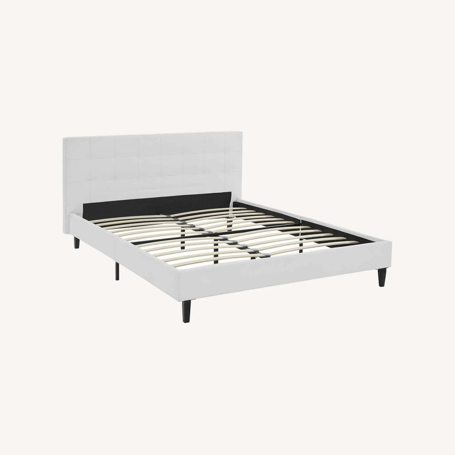 • Charmingly designed with grace and distinction, it comes with a padded vinyl base, tufted faux leather headboard, solid wood legs, and a slatted wood support system that eliminates the need for a box spring.