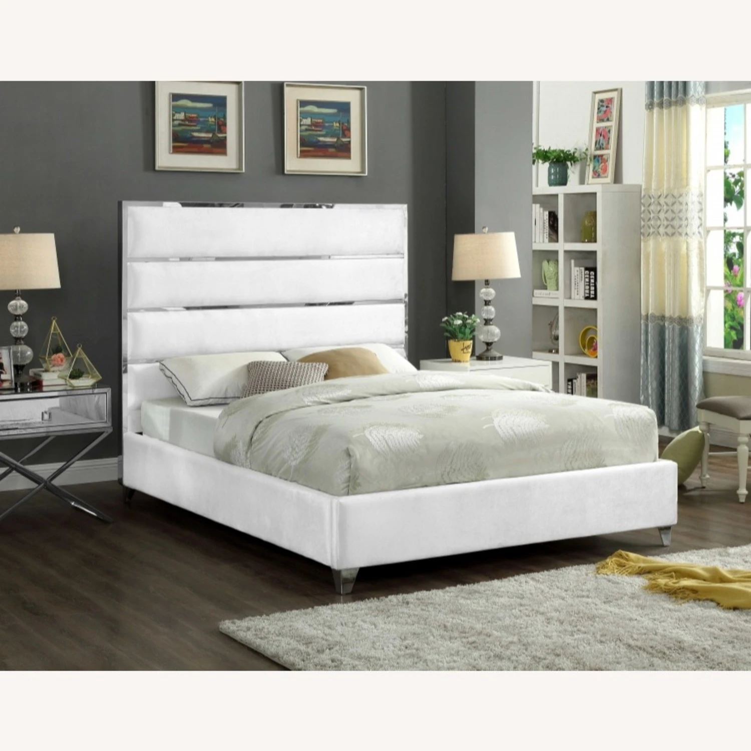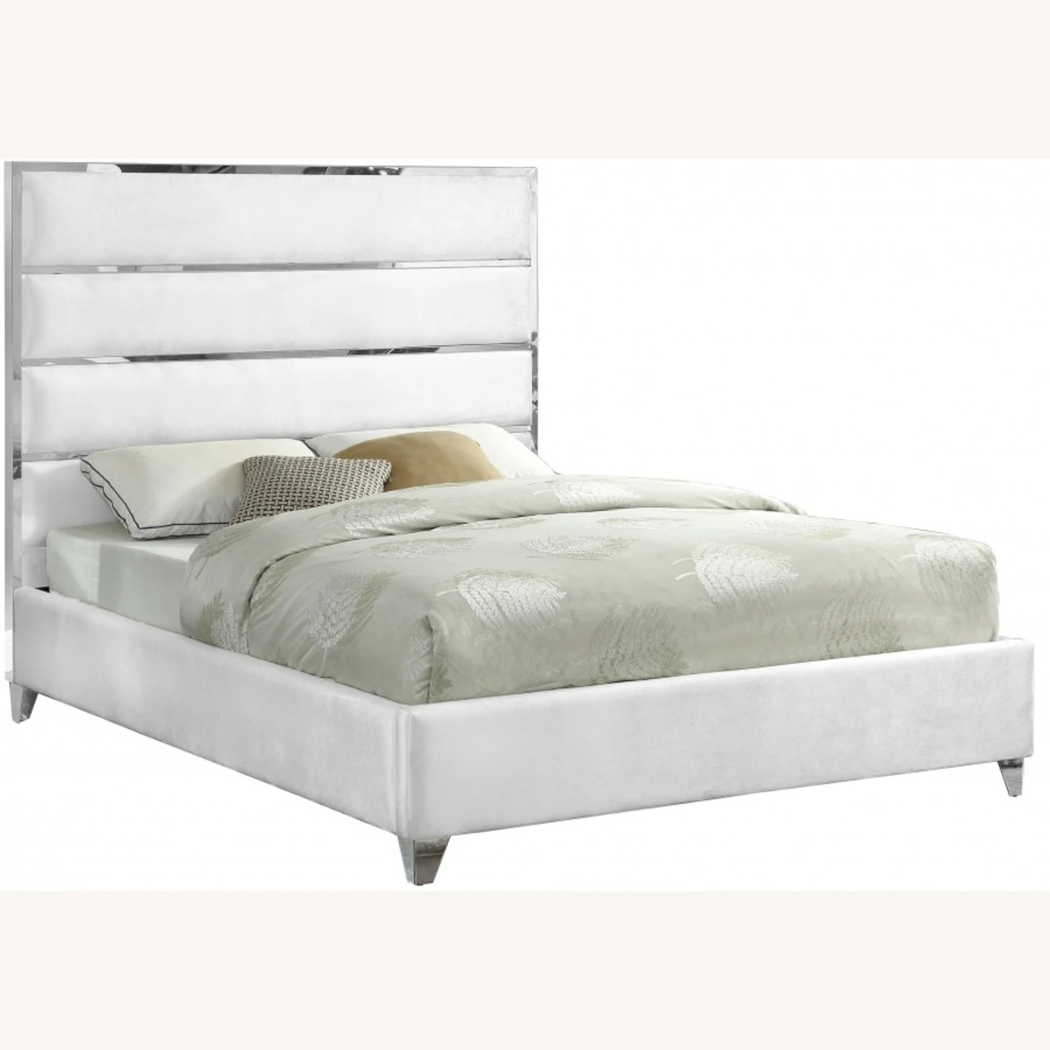 • You’ll fall fast and hard for the contemporary beauty of this White Velvet Twin Bed.
