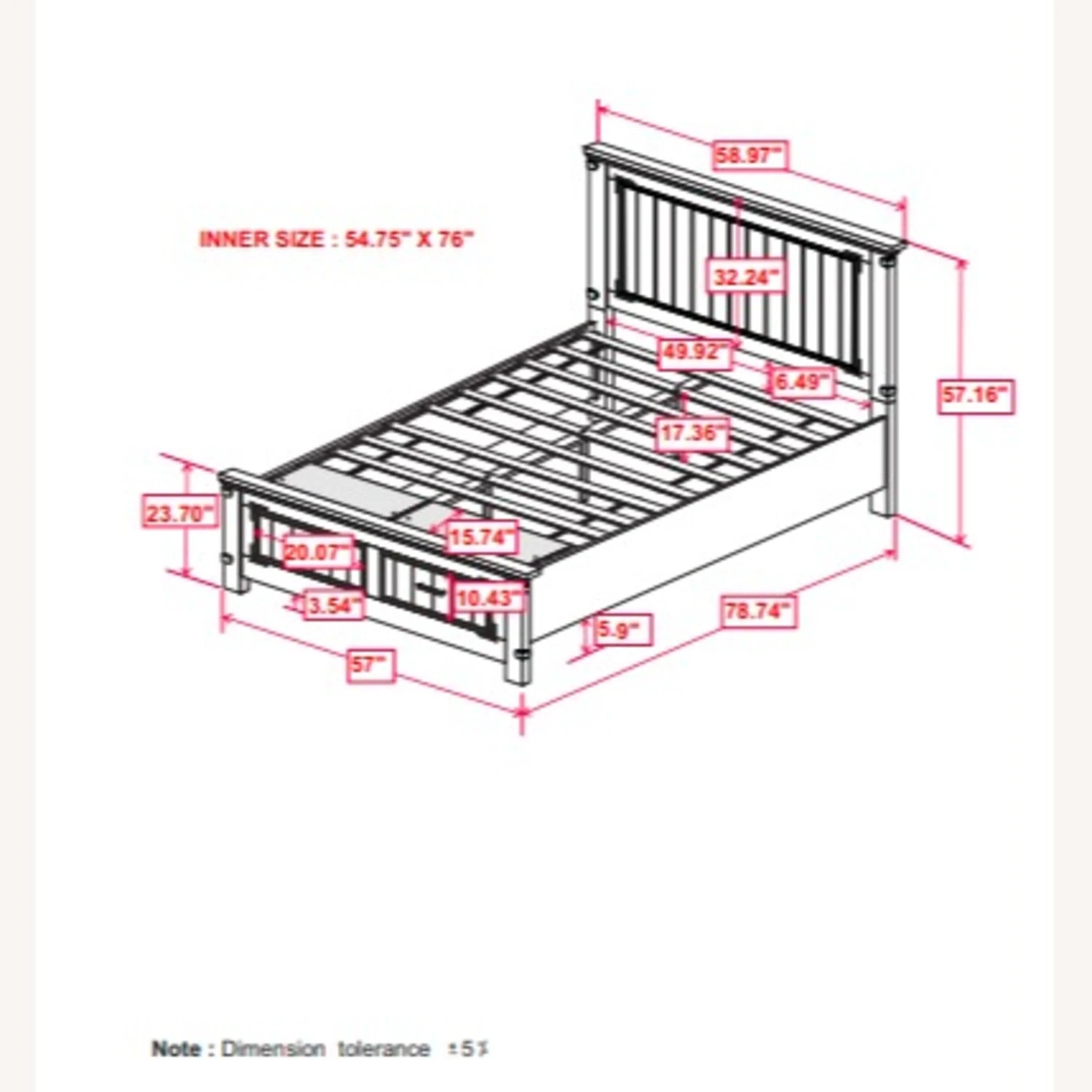 Full Storage Bed 80.00”w x 59.00”d x 57.25”h (12 slats)