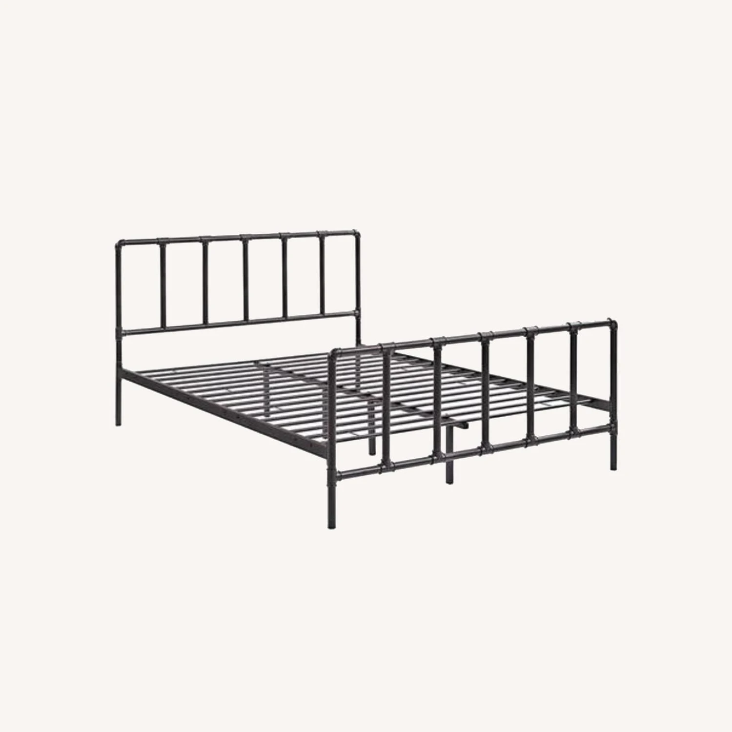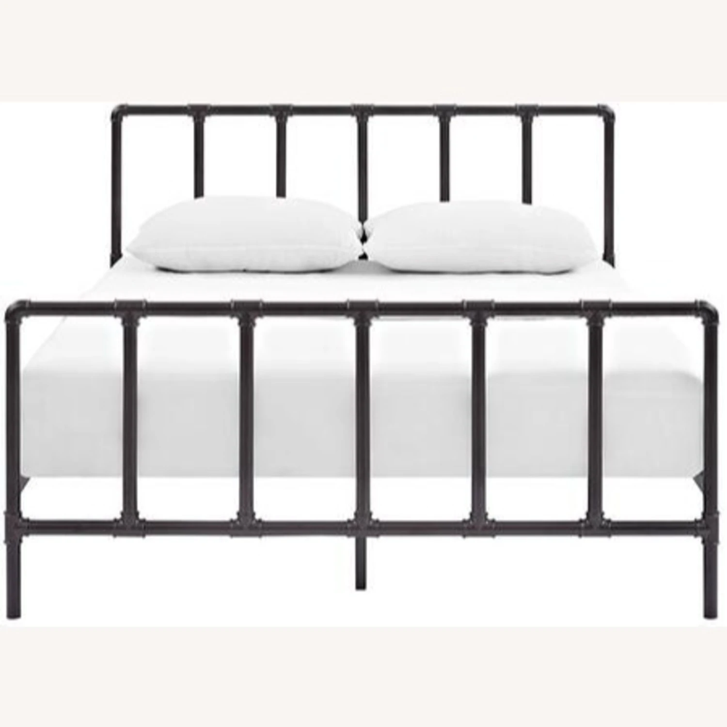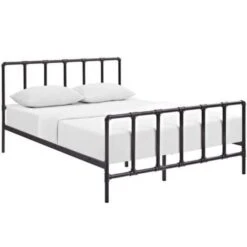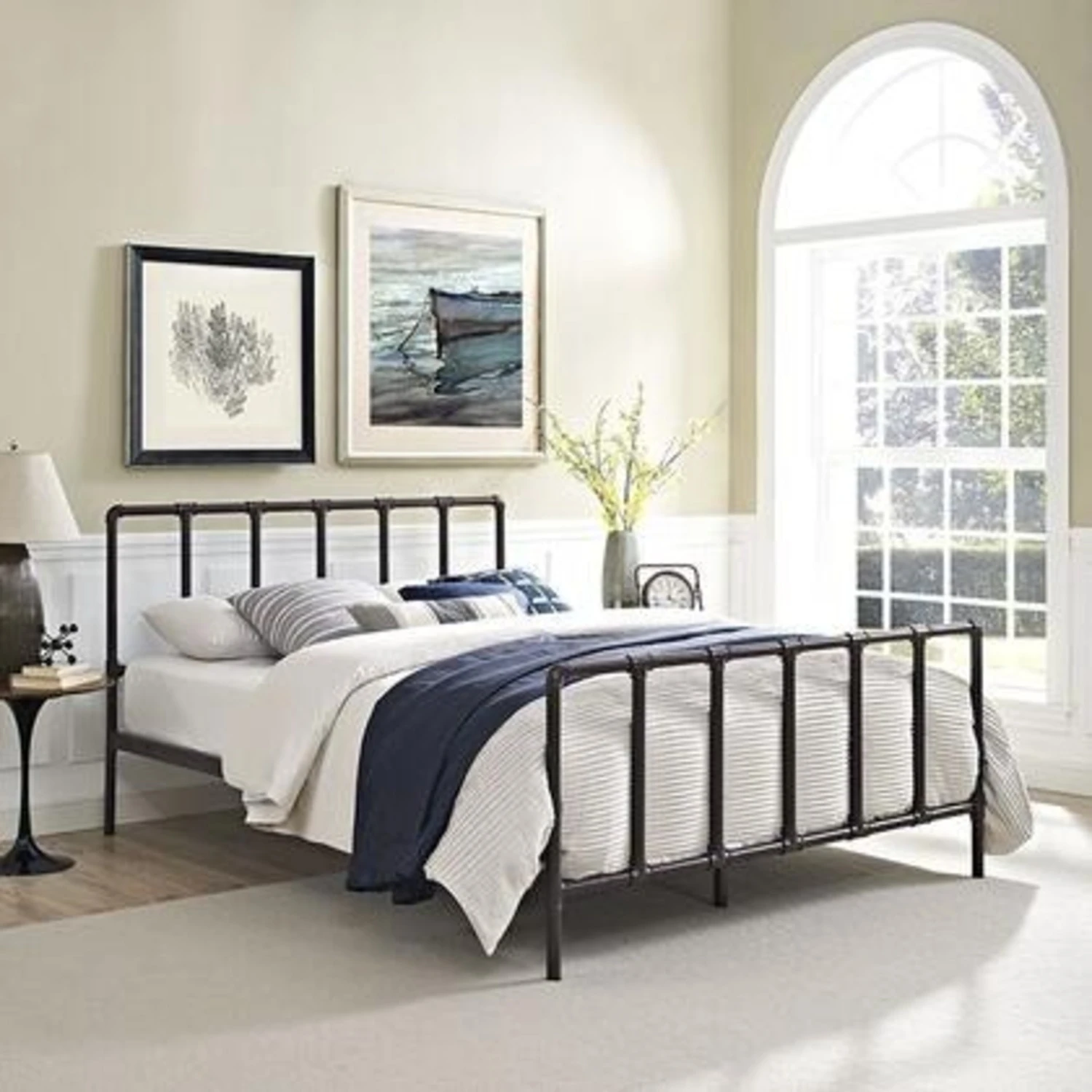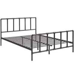 • Solidly built with industrial vintage styled steel piping and sockets, this queen bed comes with a reinforced center beam, integrated headboard/footboard design, and non-marking foot caps.