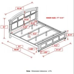 King Bed 81.00”w x 86.25”d x 57.75”h (4 slats)