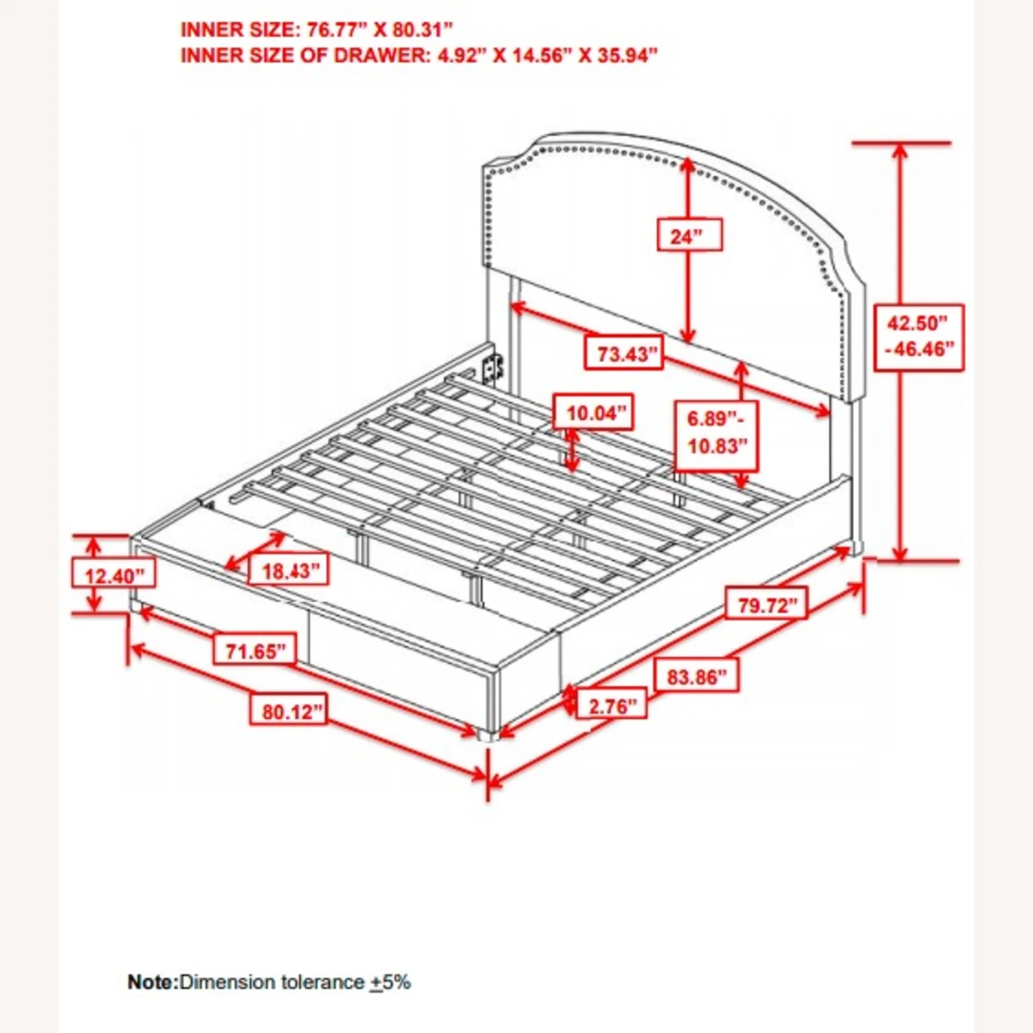 King Storage Bed 79.50”w x 83.75”d x 46.75”h