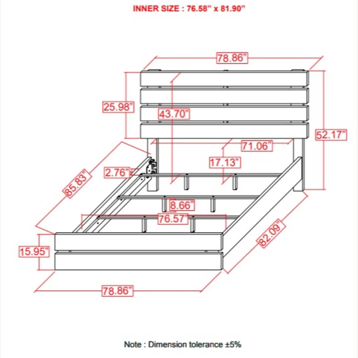 King Panel Bed 78.75”w x 85.75”d x 52.25”h (4 slats)