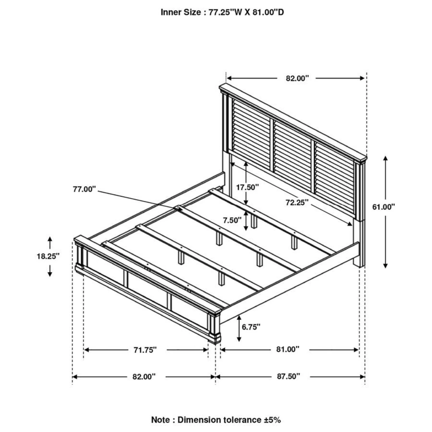 King Bed 82.00”w x 88.50”d x 61.00”h (4 slats)