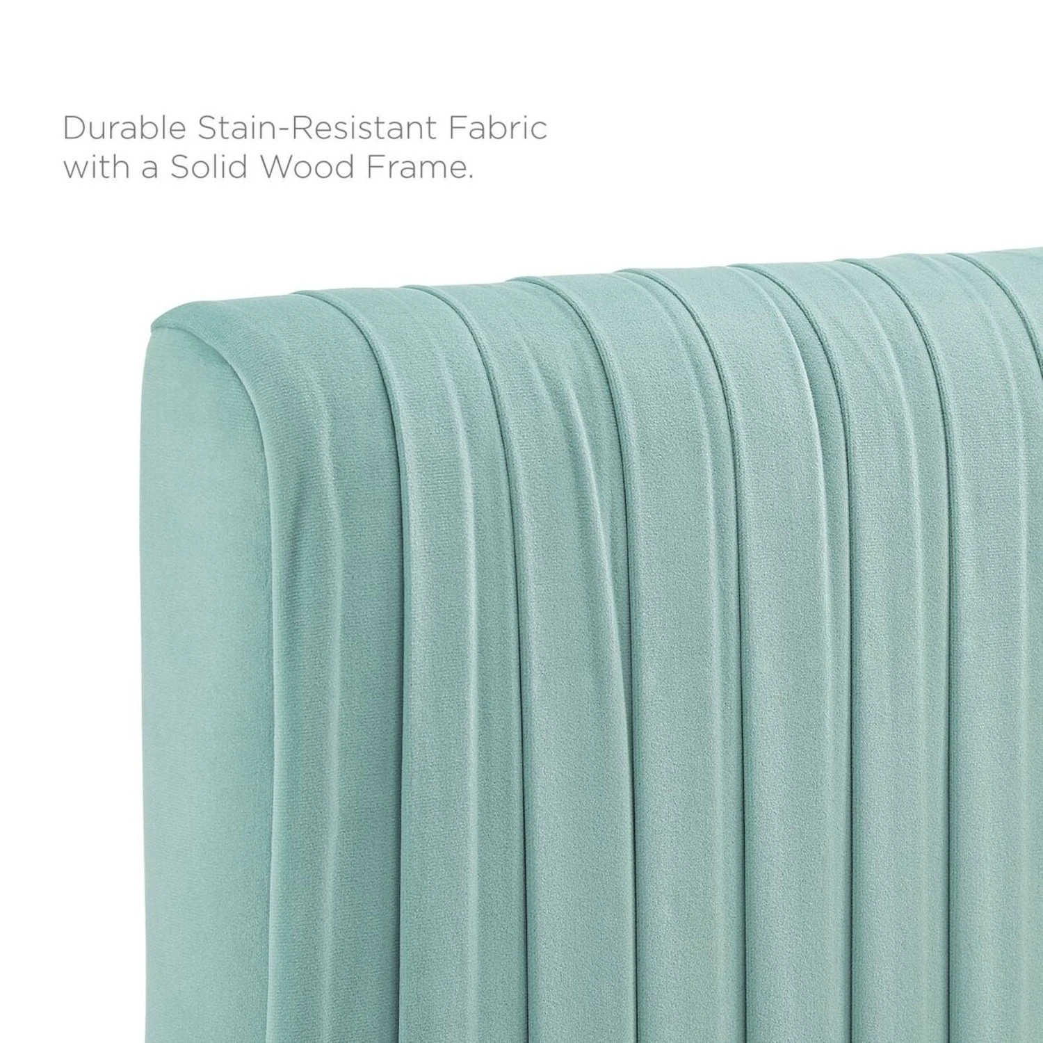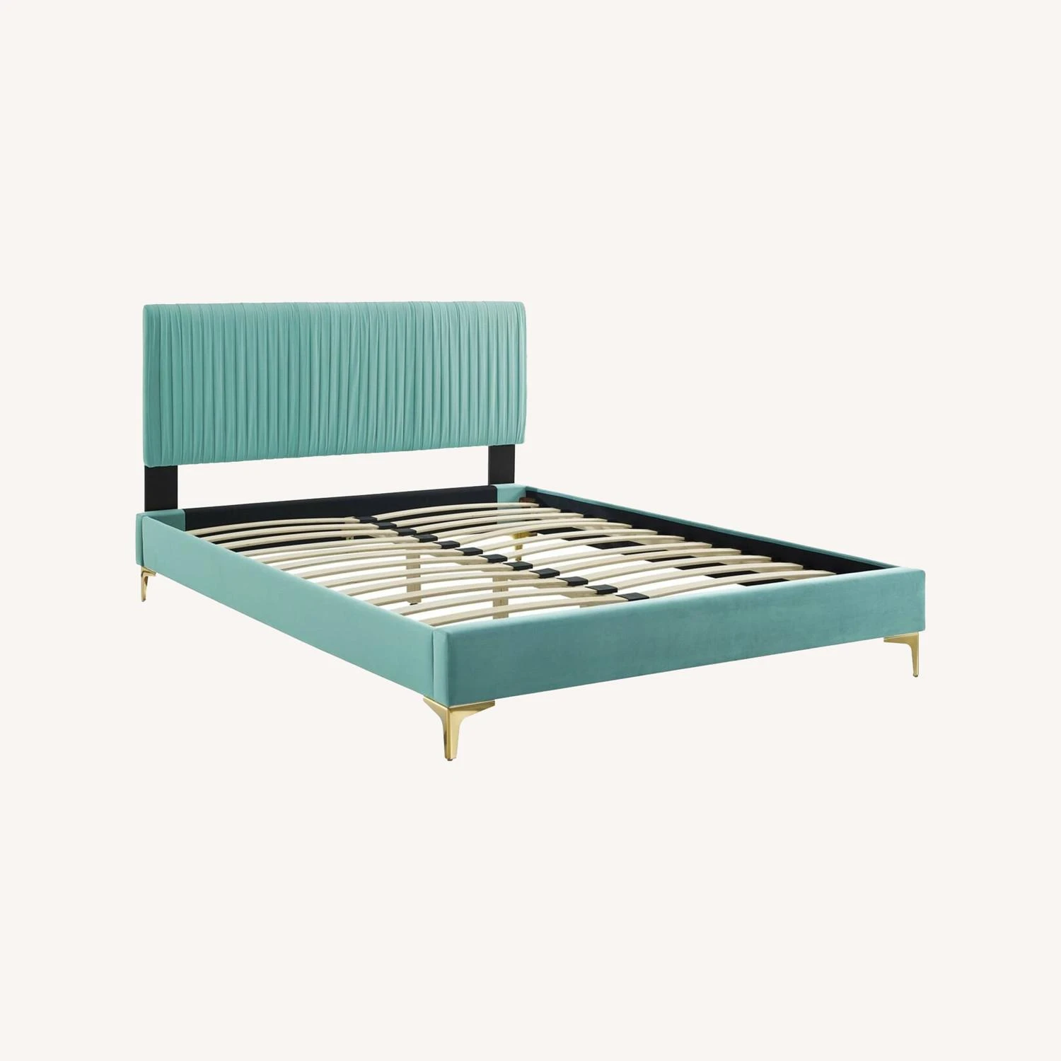 • Rich in vintage modern elegance and glam deco style, the king headboard of this platform bed features retro channel tufting, luxe velvet texture, and dense foam padding to offer a supportive place to rest while sitting up in bed.