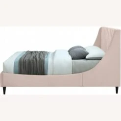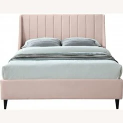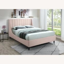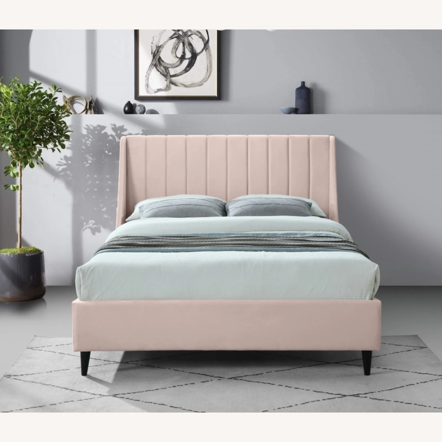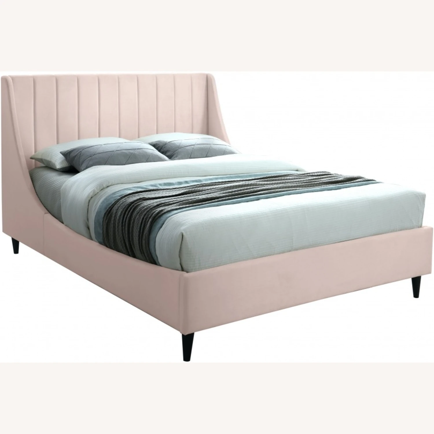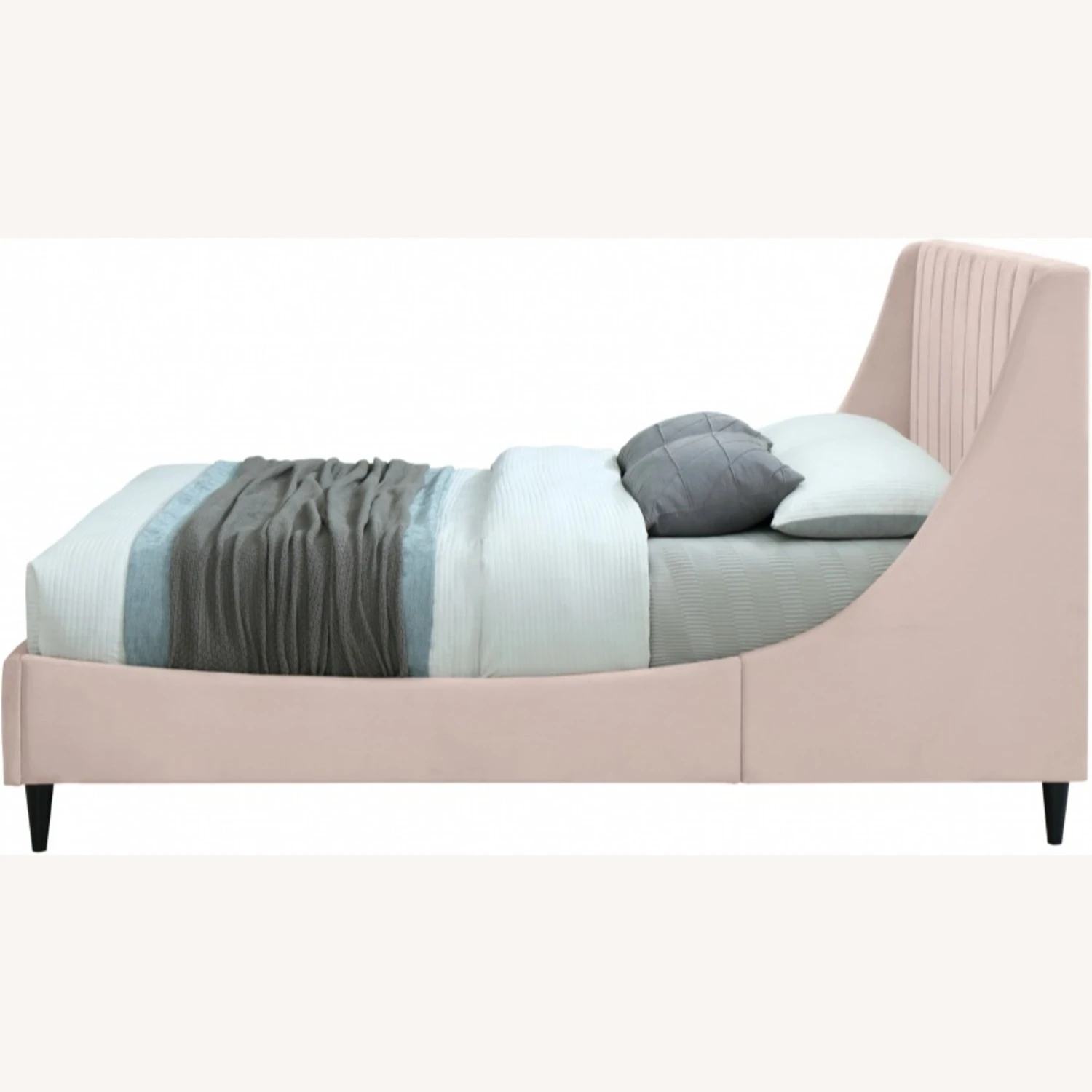 • Snuggle up to a pet or other loved one in this richly upholstered pink velvet king size bed for the ultimate in rest and relaxation.