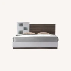 • Available in two different versions, This bed features a visually striking contrast between a Walnut Veneer & a gorgeous white lacquer.