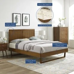 • Bring modern style to the master bedroom or guest room with the retro detail and organic aesthetics of this Wood Queen Platform Bed.
