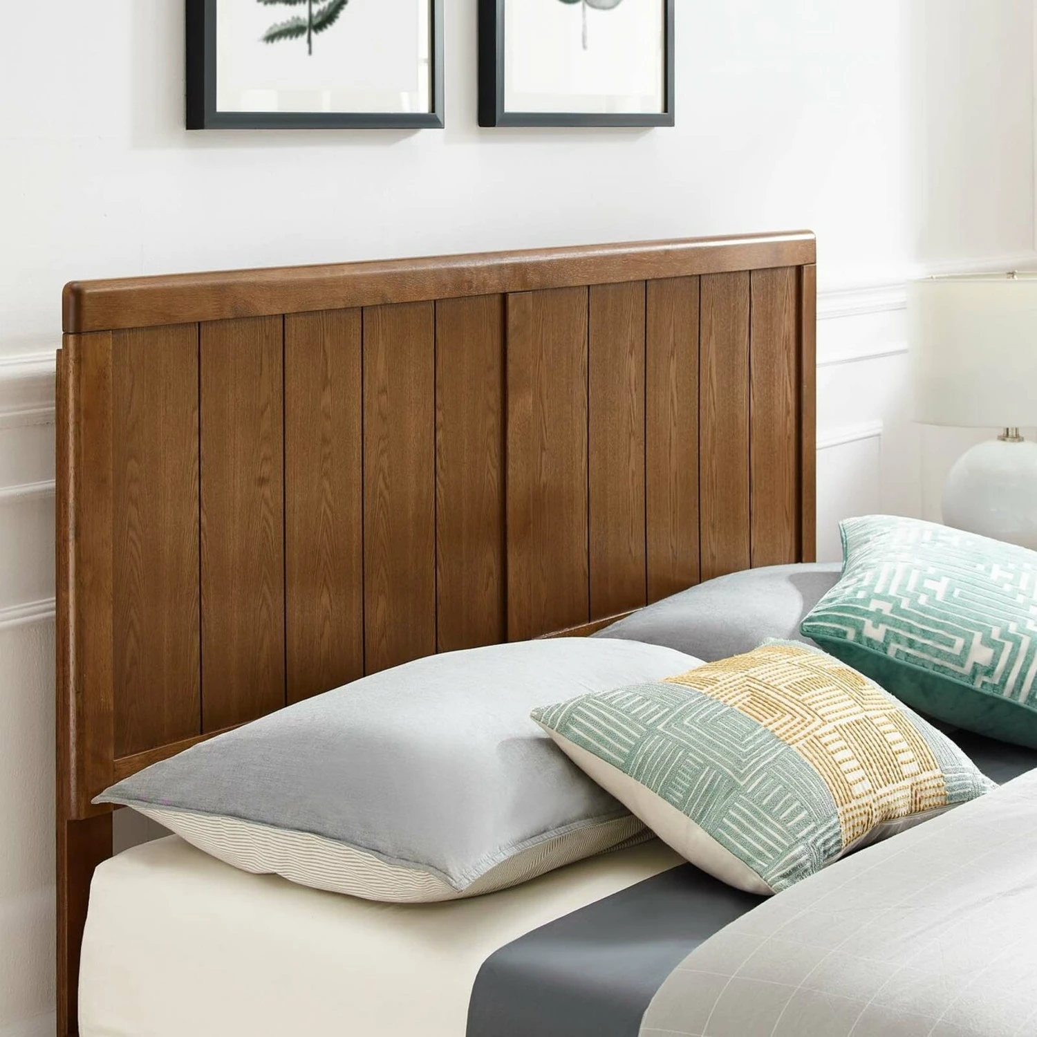 • Inspired by mid-century design, the queen headboard of this wood bed features beautiful wood paneling and contemporary accents.