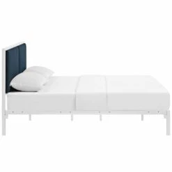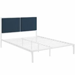 • This king’s paired headboard comes finely upholstered in fabric with a base that features non-marking foot caps.