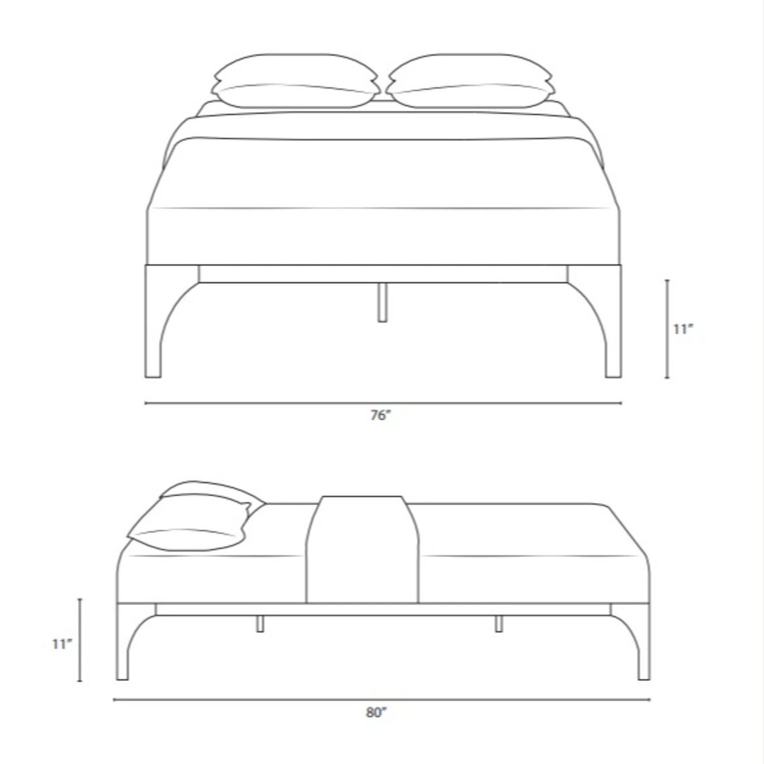 Overall Dimensions: Width: 80 inches, Height: 11 inches, Depth: 76 inches