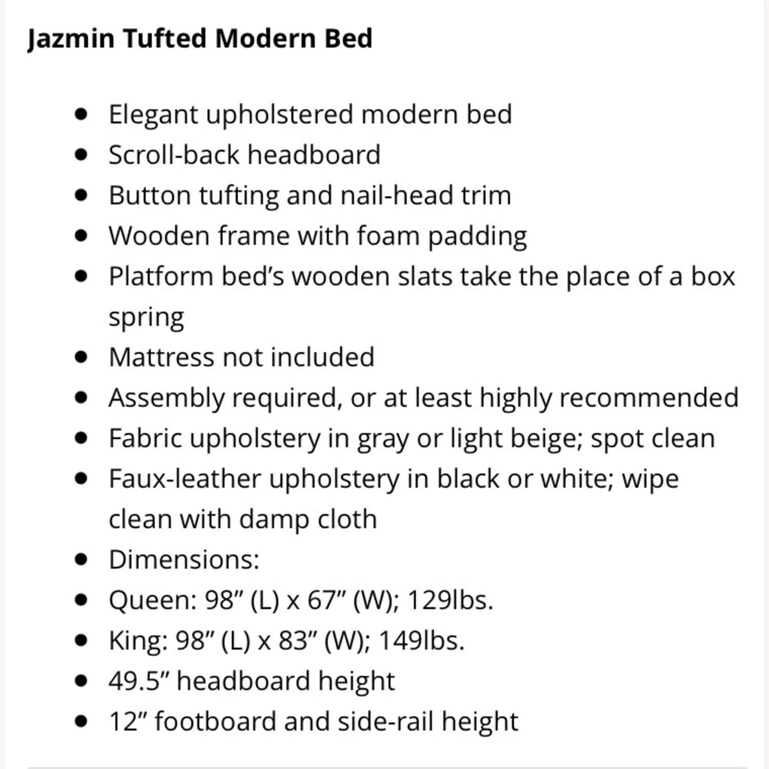 Seller’s Notes: Gorgeous – elegant and modern king bed. Please refer to the dimensions in the picture for the measurement as listing only allows for whole numbers.