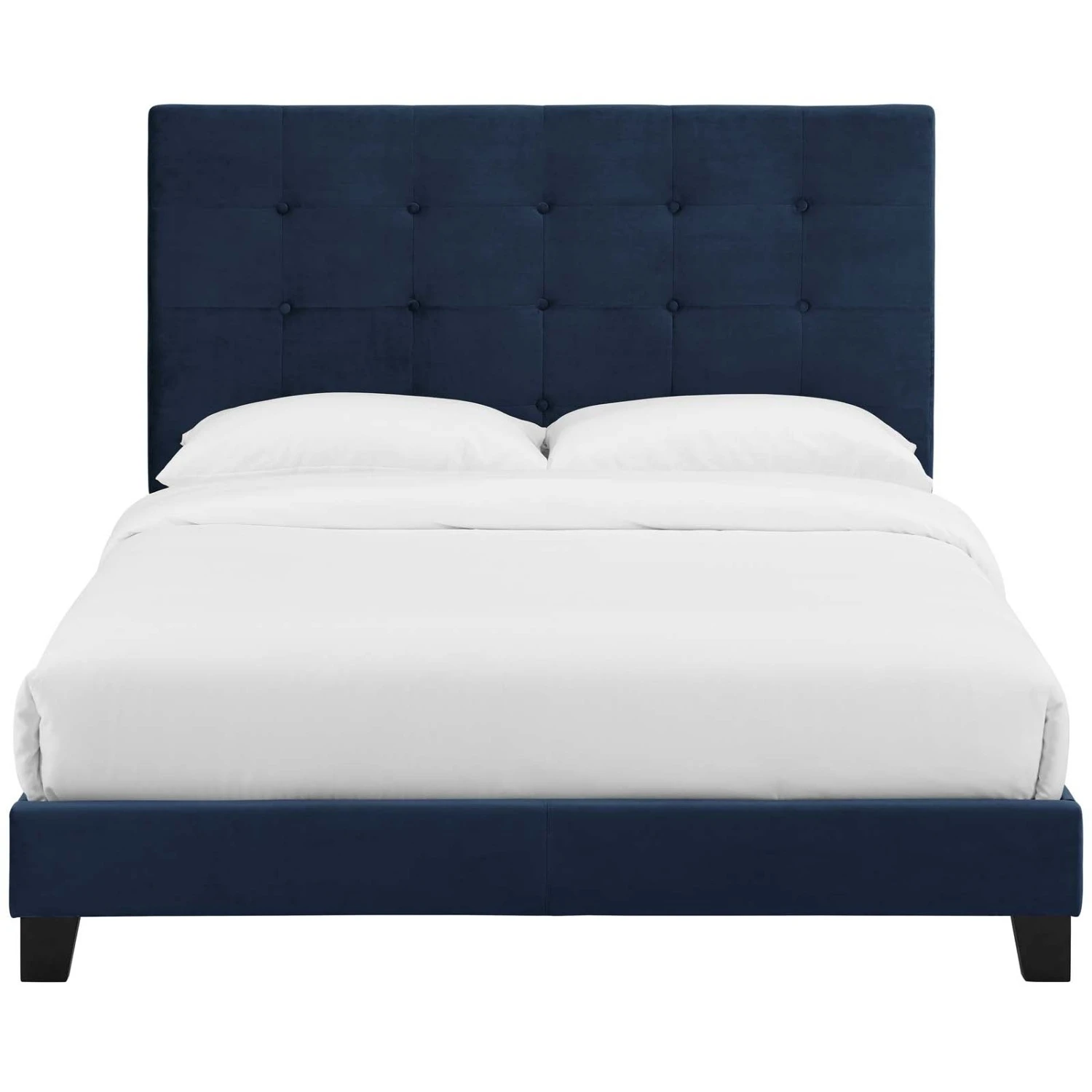 • Designed with chic elegance and contemporary style, its base and headboard come upholstered in luxurious stain-resistant performance velvet, while the sturdy wood frame and legs offer lasting durability.