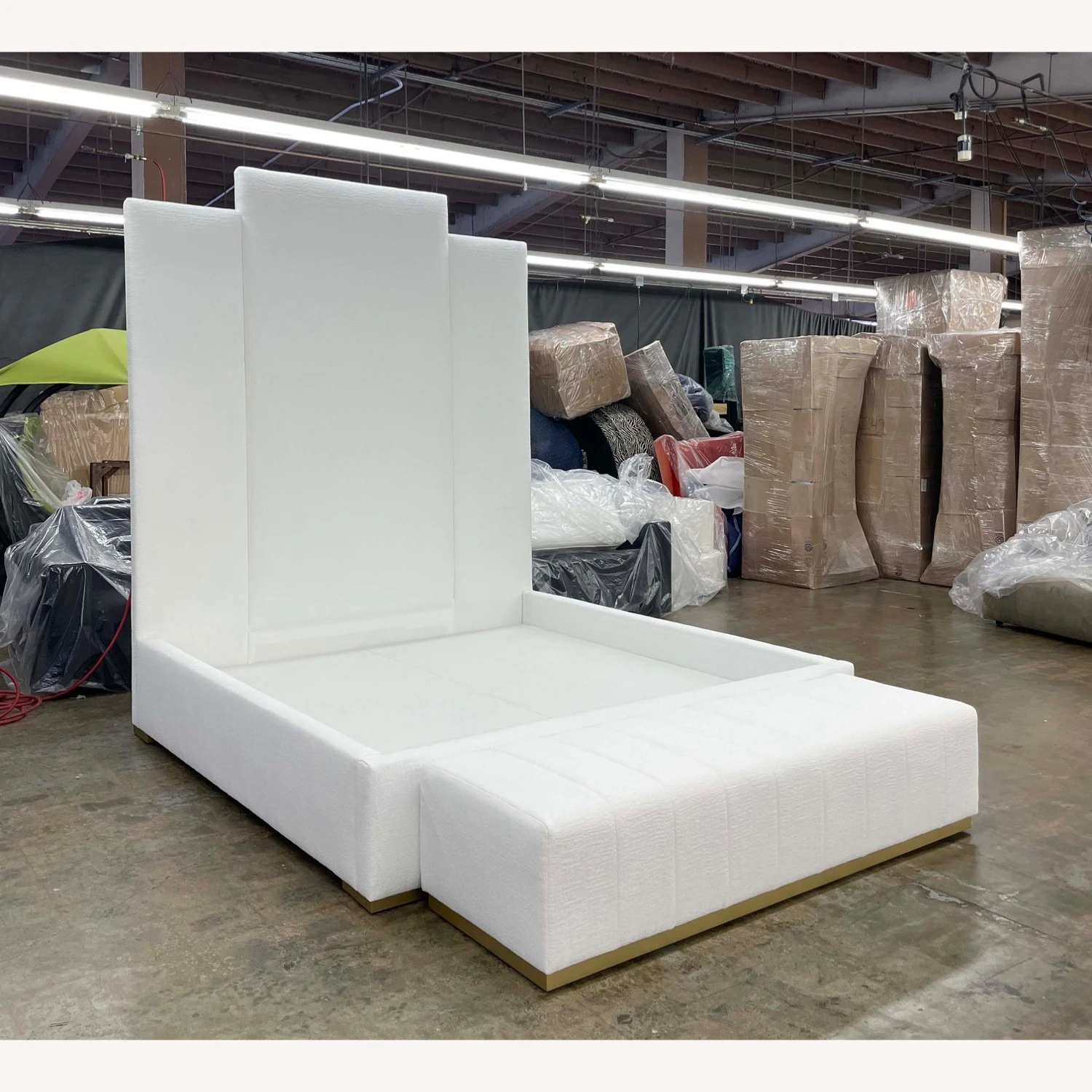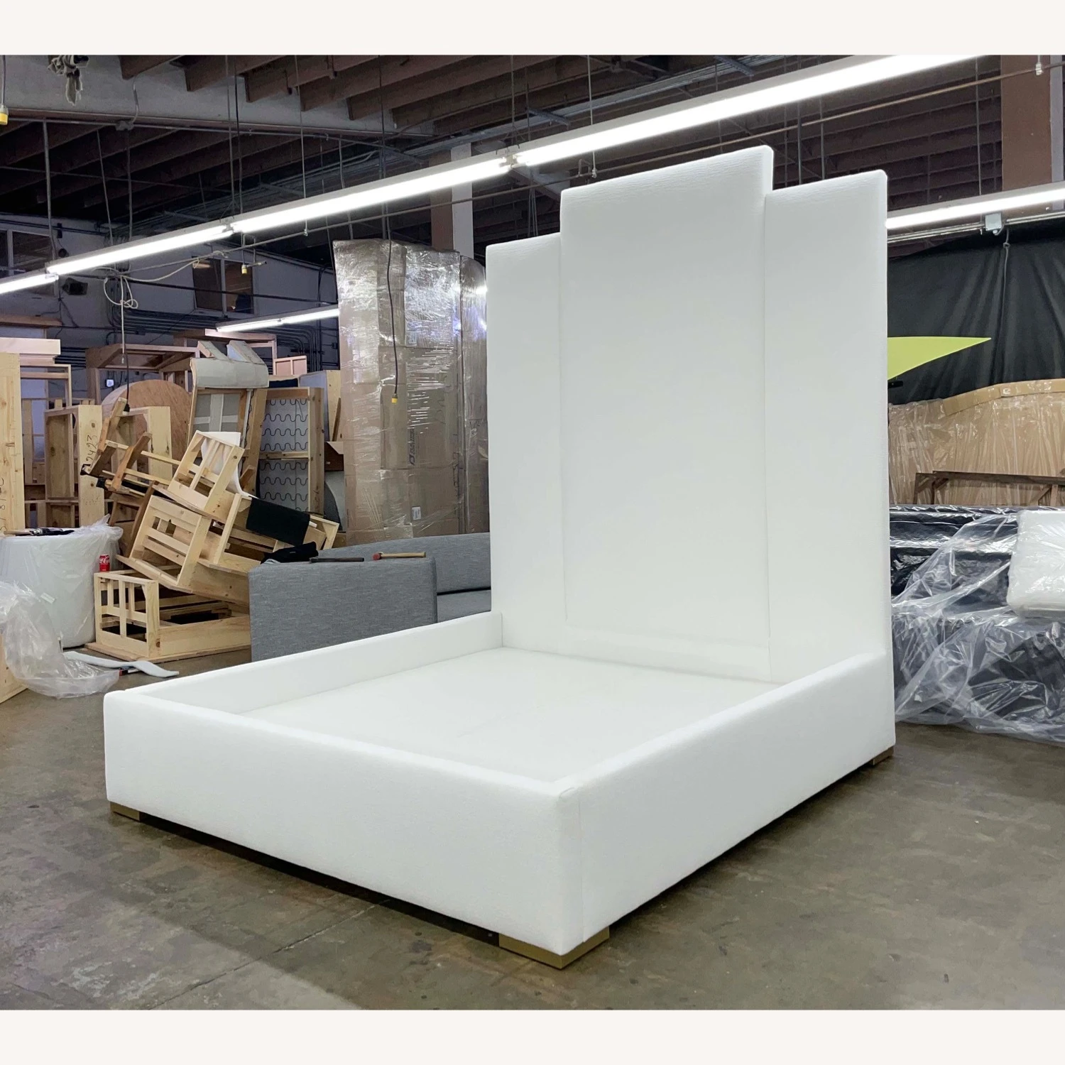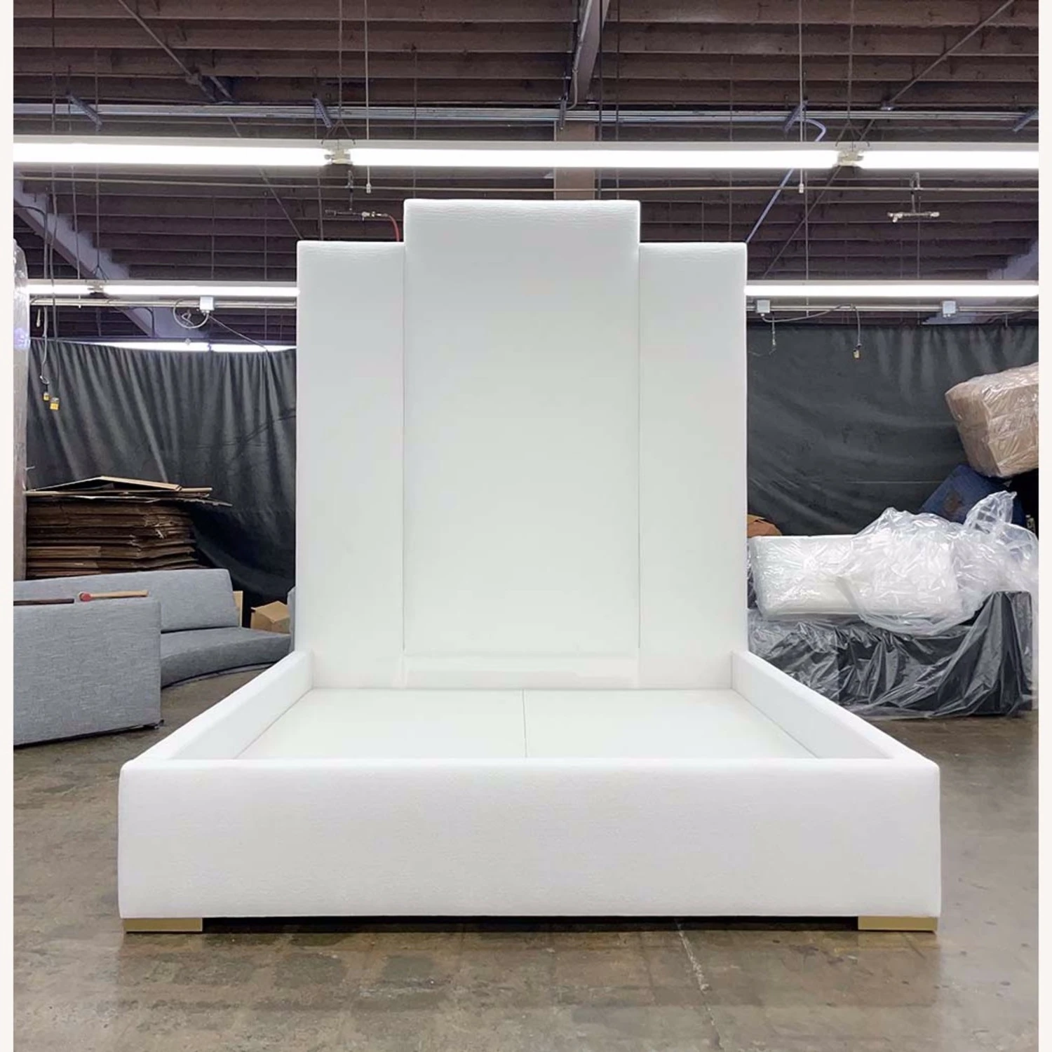 Seller’s Notes: 104″H Headboard! King Size! French Knotts Boucle Upholstered with luxury finish inside box. Brand New.