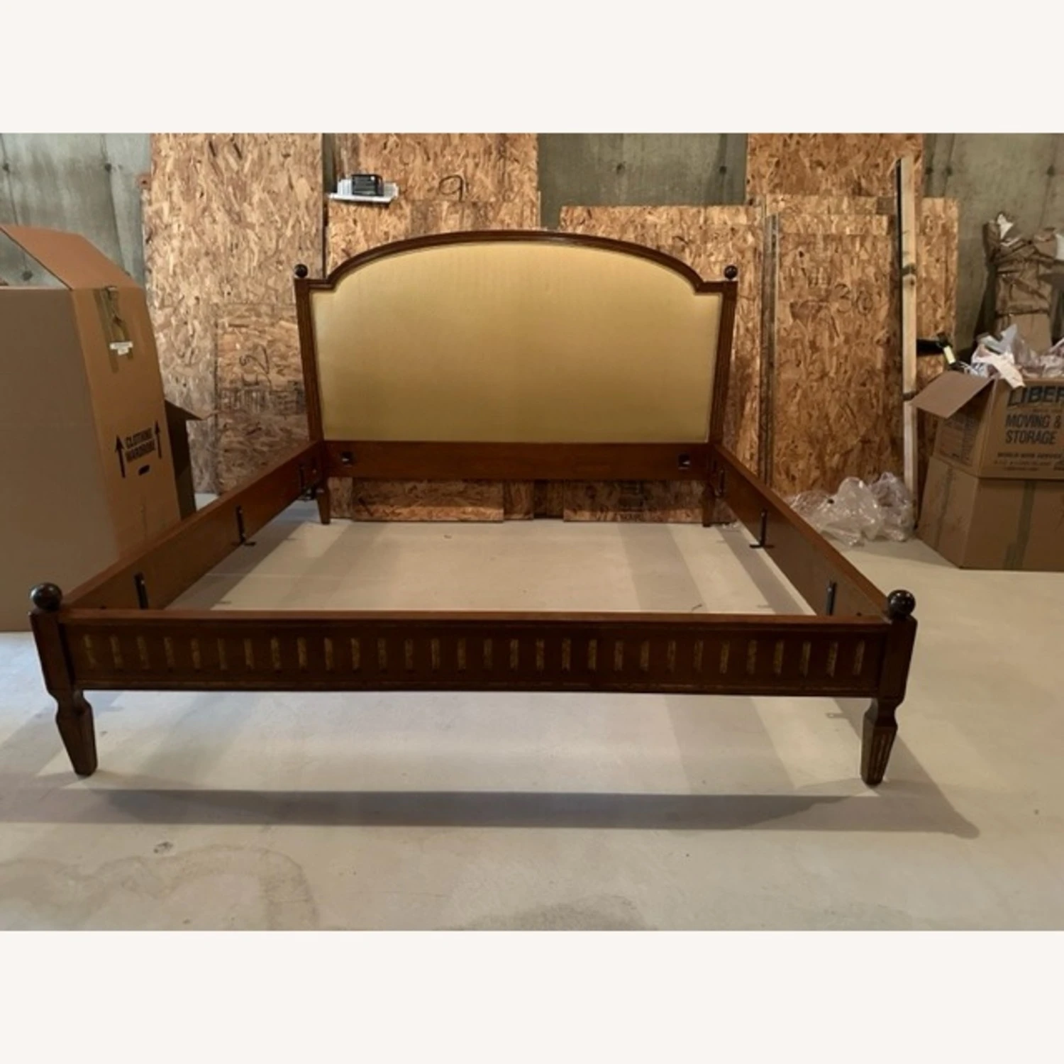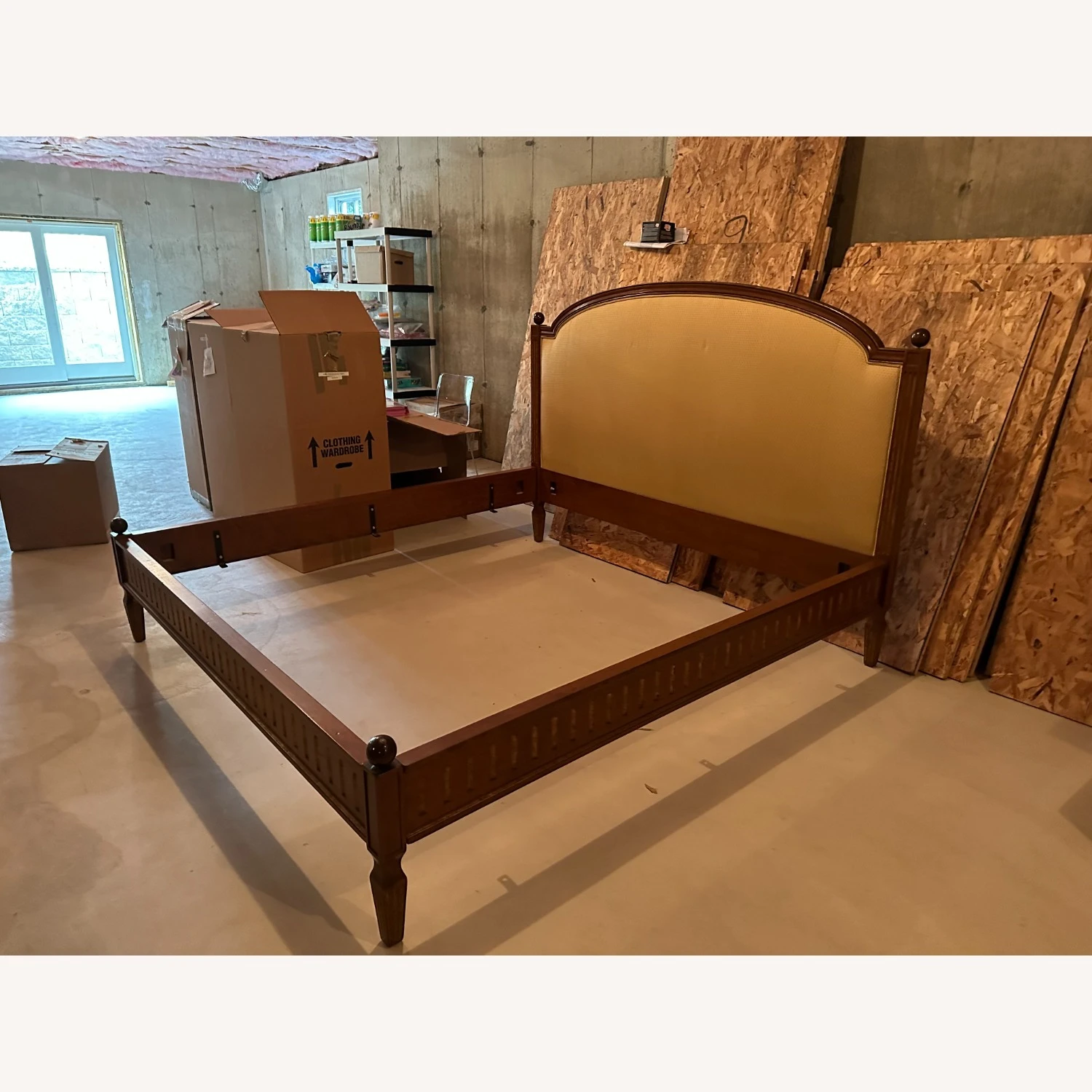 Seller’s Notes: King-size traditional wood and fabric bed with headboard and footboard. Relocated to downsize and the size is too large.