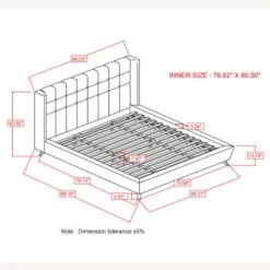 Eastern King Bed 84.25”w x 88.25”d x 42.50”h (13 slats)