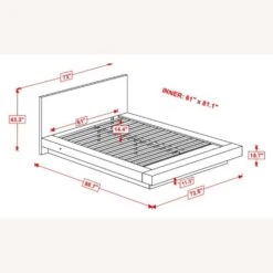 Queen Bed 73.00”w x 88.75”d x 43.25”h (14 slats)