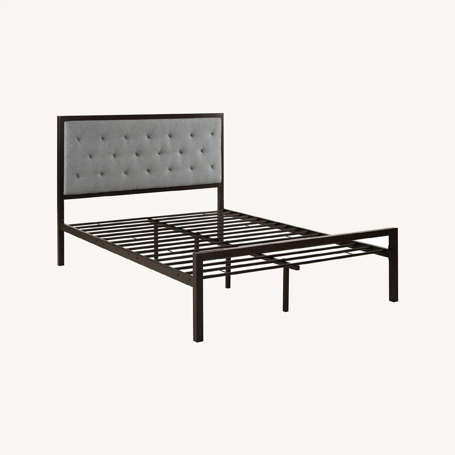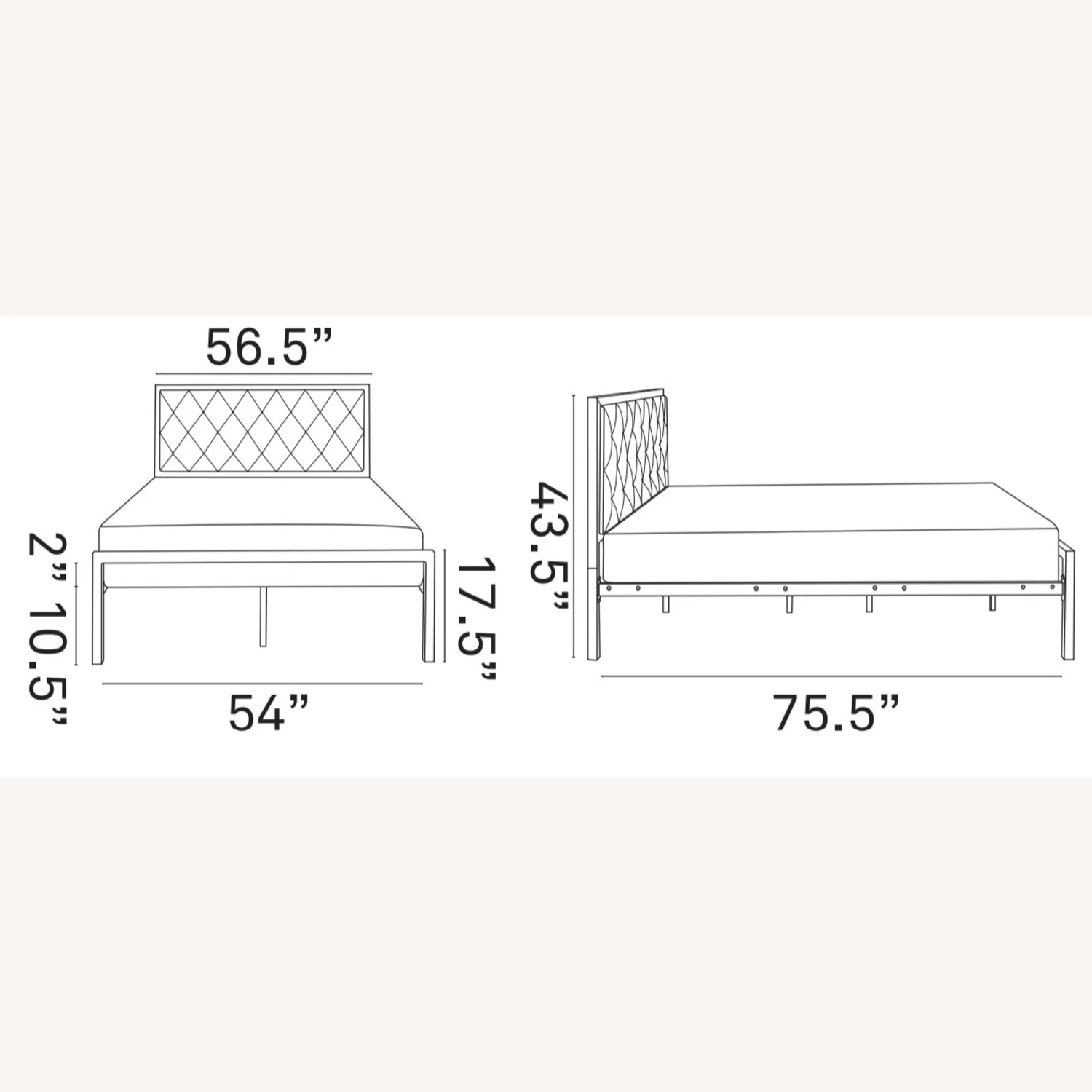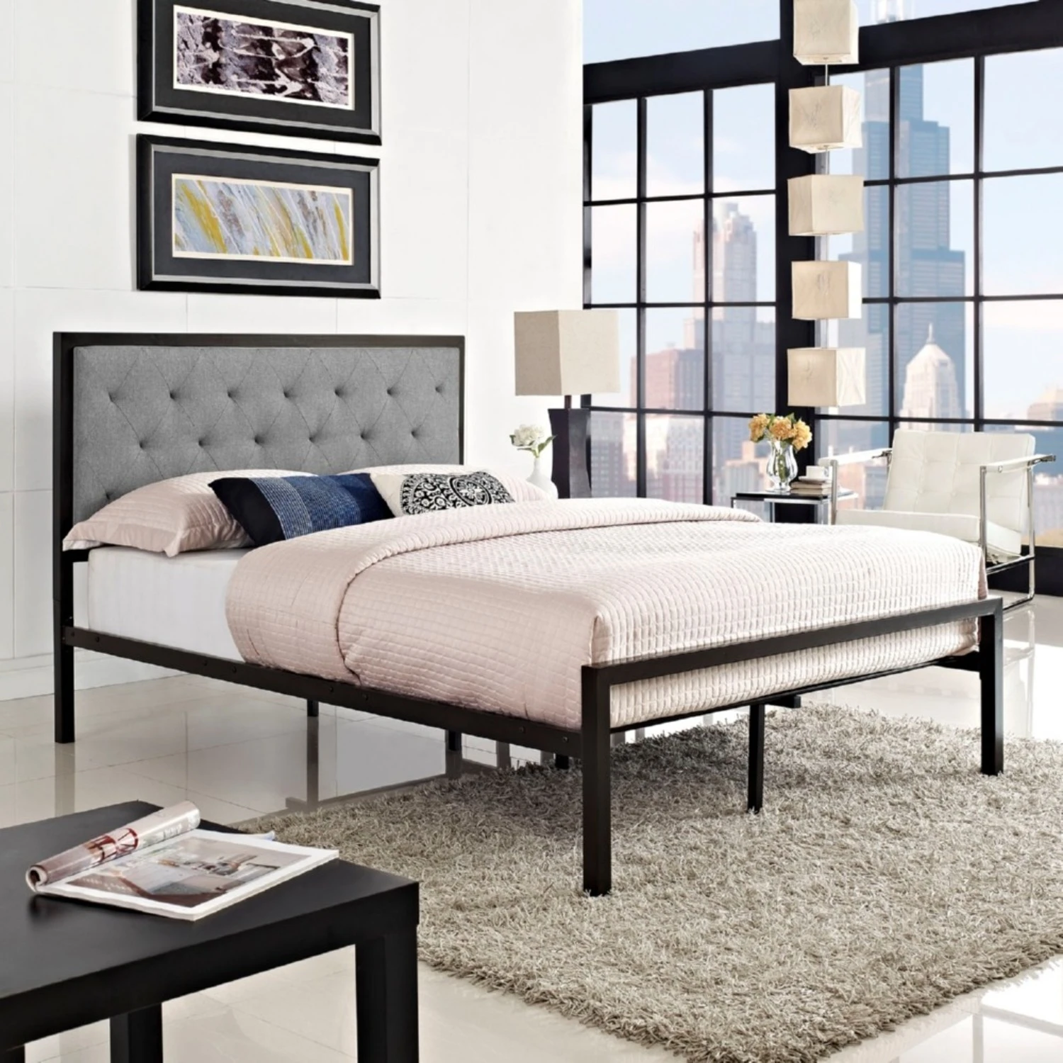 • This full bed comes with a powder-coated steel frame that offers sturdy and long-lasting support, while the fabric headboard with deep tufted buttons adds a touch of magnificence to an otherwise minimalist design.