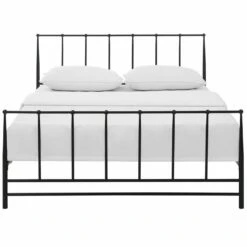 • Gracefully designed with integrated round finials, comprehensive headboard to footboard construction, charming tapered frame made of coated steel, non-marking foot caps, and two reinforced center beams with supporting legs for maximal stability, this is a nostalgic piece built upon the standards of design excellence.