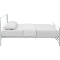 • Reminiscent of nostalgic cottages and country homes, this bed’s rail system eliminates the need for a box spring, and admirably supports mattress types such as memory foam, spring, latex, and hybrid.