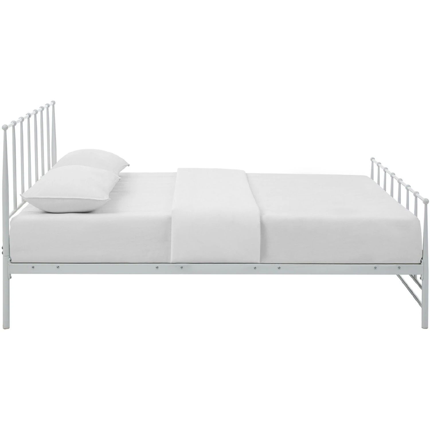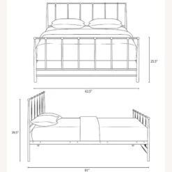• Gracefully designed with integrated round finials, comprehensive headboard to footboard construction, charming tapered frame made of coated steel, non-marking foot caps, and a reinforced center beam with supporting legs for maximal stability, this bed is a nostalgic piece built upon the standards of design excellence.